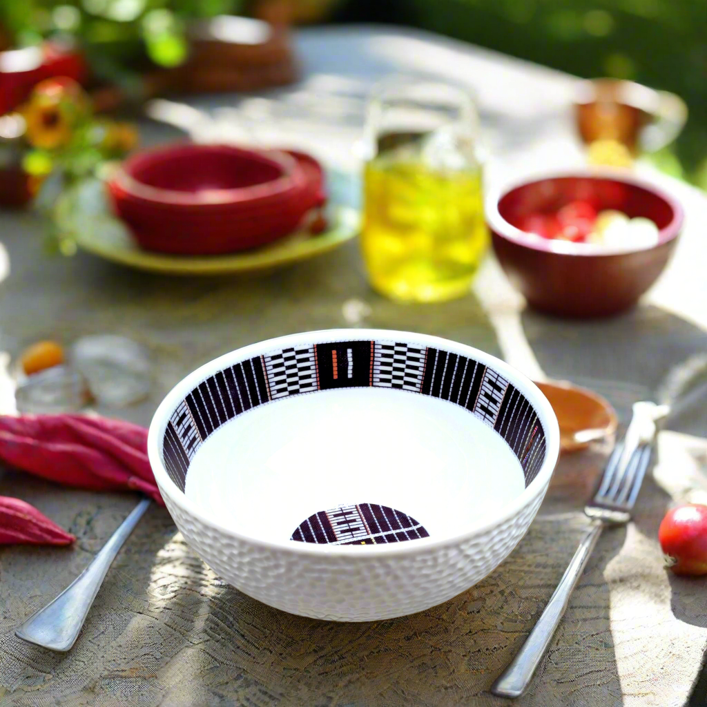 🔷 Bol en Porcelaine Fine – Motif Sénoufo Bleu Indigo