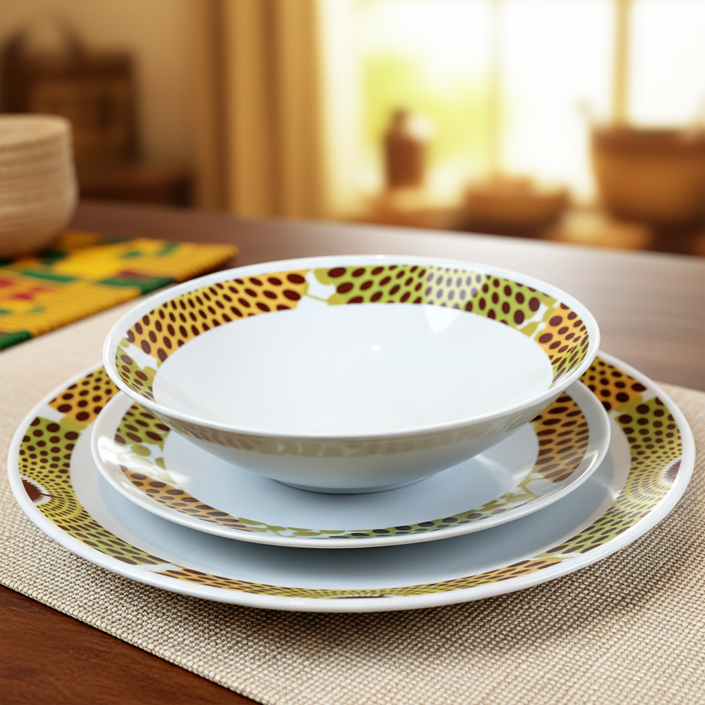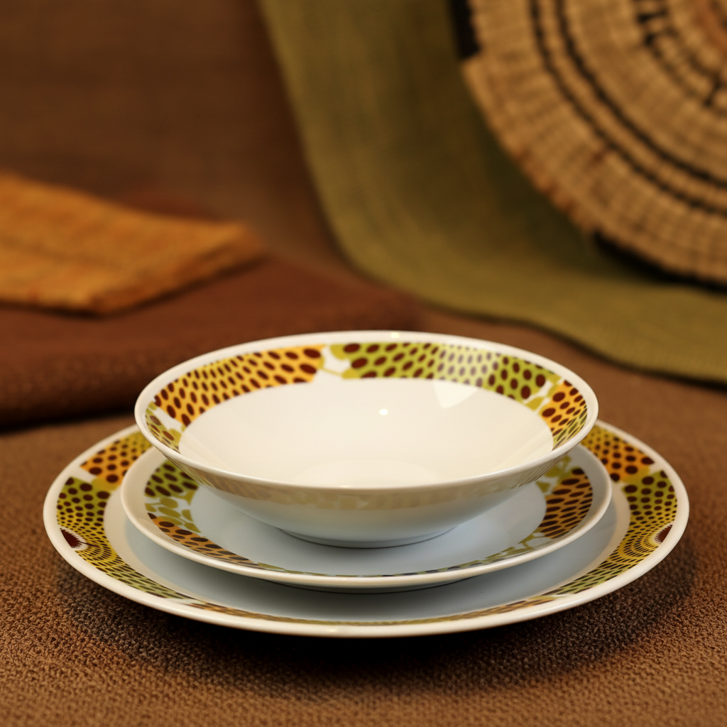 Das **Gammaphon-Motiv** ist von der Welt des **Grammophons** inspiriert, einem legendären Gerät, das die Schallübertragung revolutionierte. Sein Design erinnert an **Schallwellen**, die **kreisförmigen Bewegungen der Schallplatte** und die **Kraft des Rhythmus**, wesentliche Elemente der afrikanischen Musikkultur.
