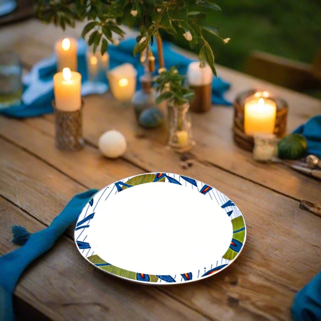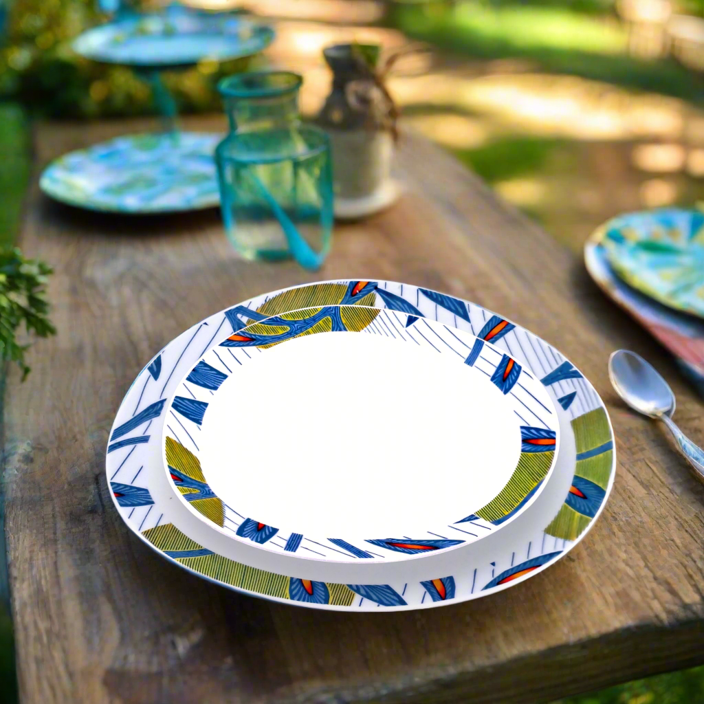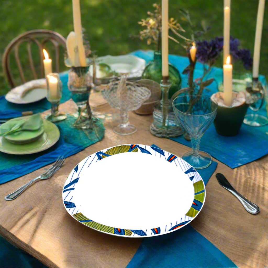 Coffret de 6 Assiettes Ovales en Porcelaine Fine – Motif Wax Africain “Pomme de Discorde” – Fabrication française personnalisable