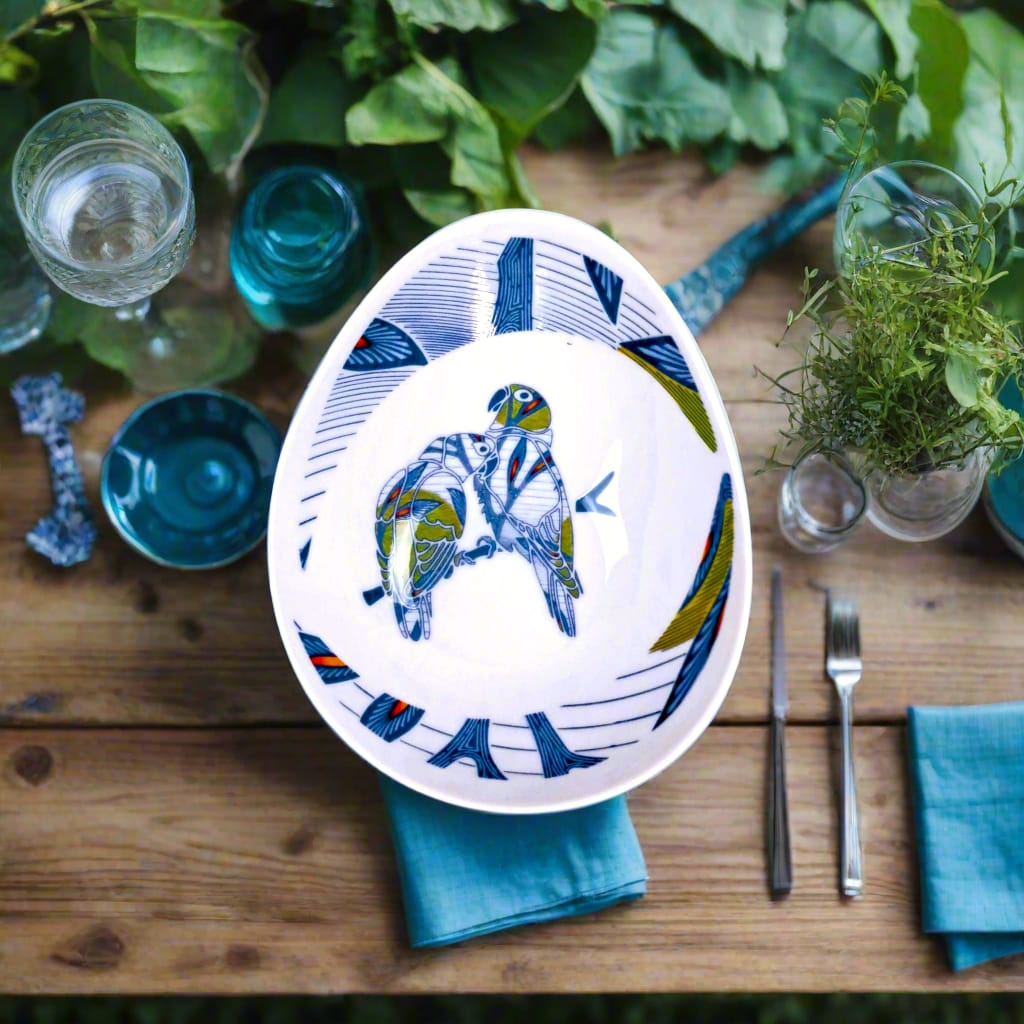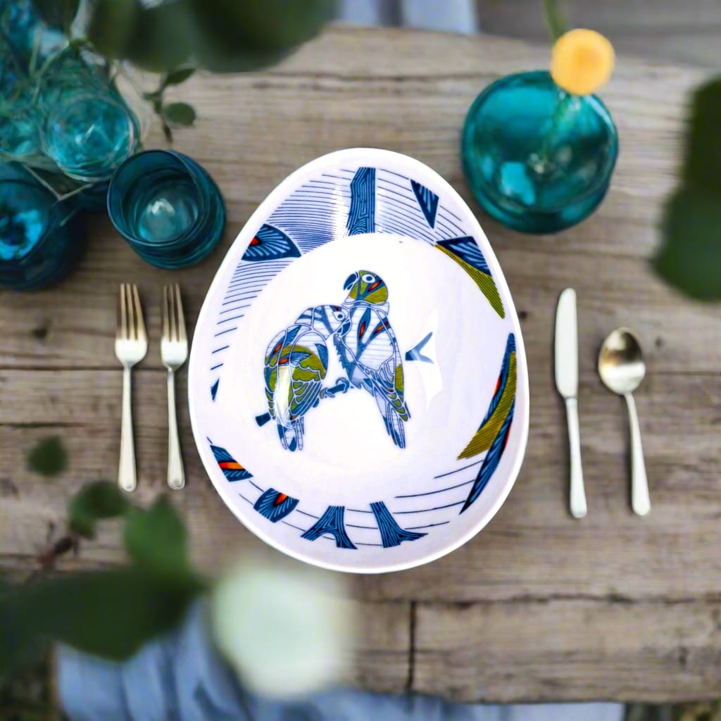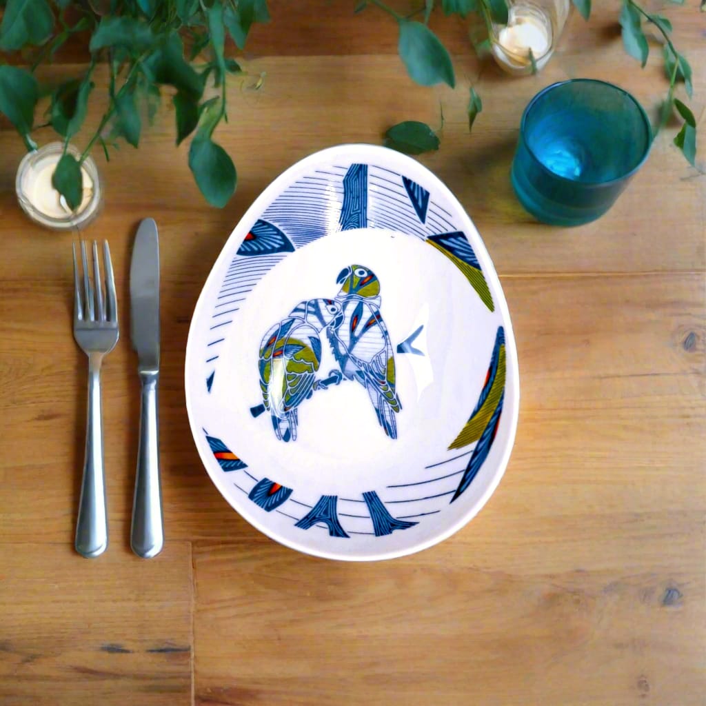 Coffret de 6 Assiettes Ovales en Porcelaine Fine – Motif Wax Africain “Pomme de la Discorde” – Fabrication française personnalisable