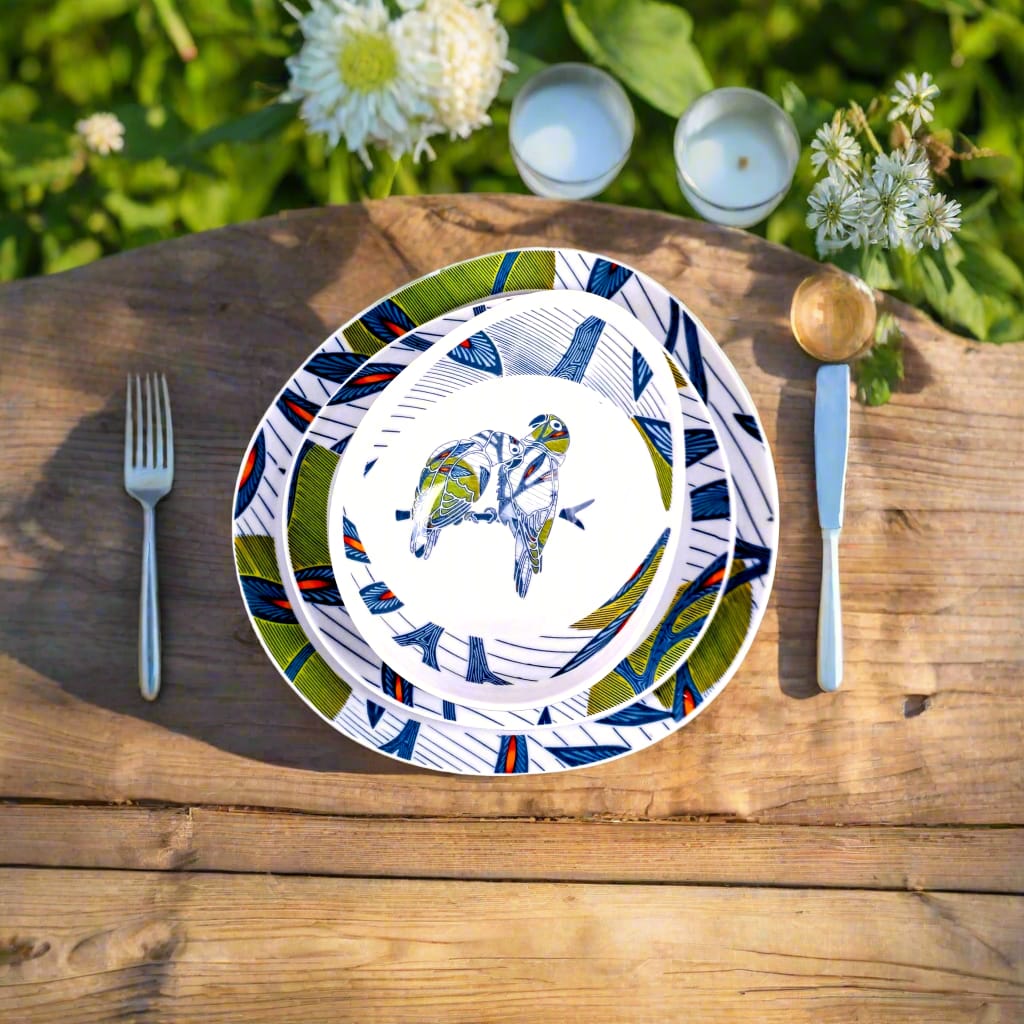 Fabriquées localement avec une porcelaine de haute qualité, ces assiettes allient finesse, éclat et robustesse. Un hommage à l’art de la table à la française, revisité avec une touche afro-contemporaine.