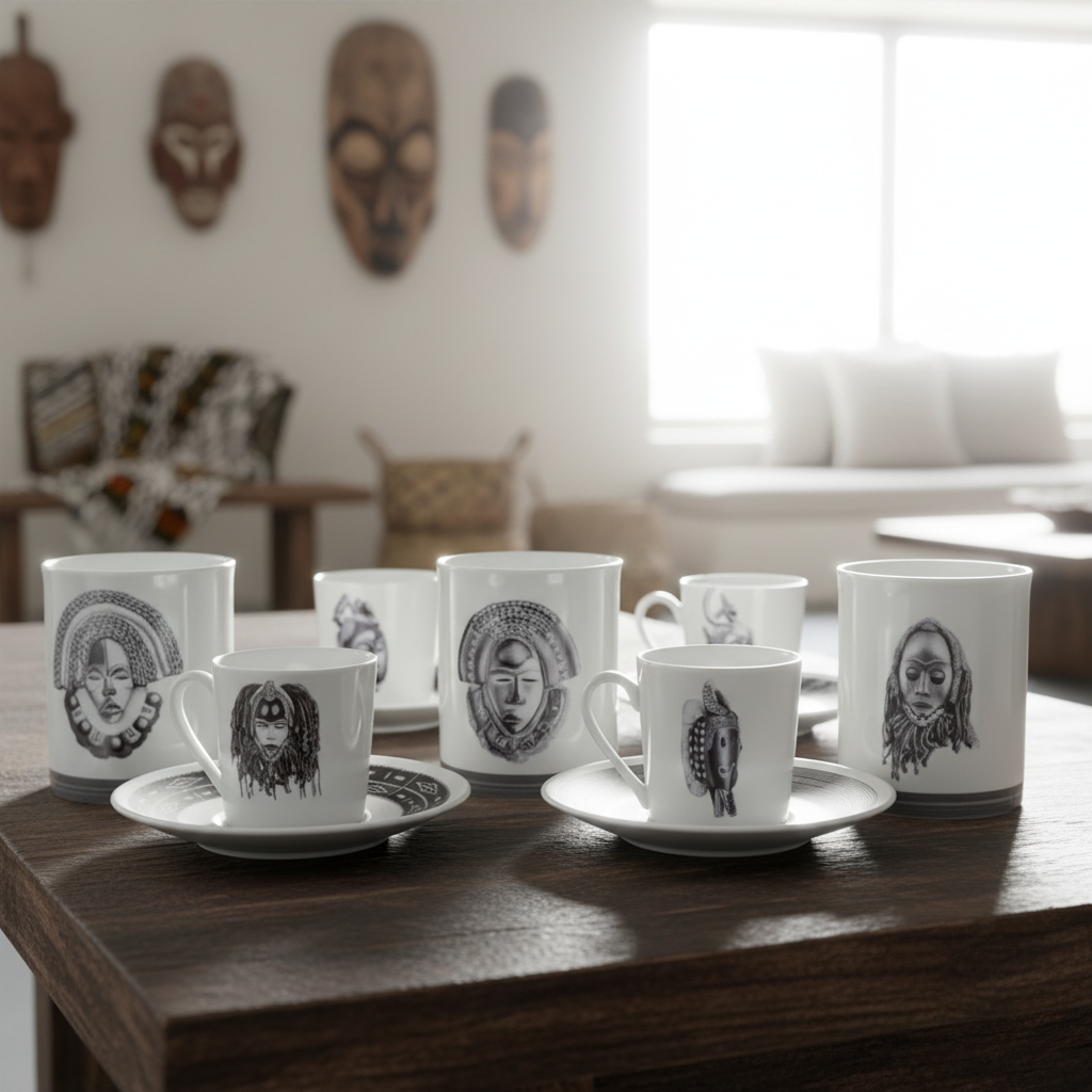 Mug en Porcelaine Fine – Masques Ivoiriens "Yacouba" & "Dan"
