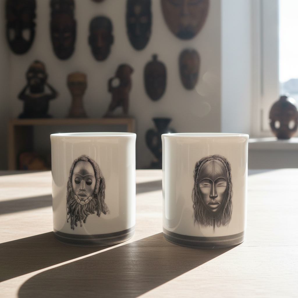 Mug en Porcelaine Fine – Masques Ivoiriens "Yacouba" & "Dan"