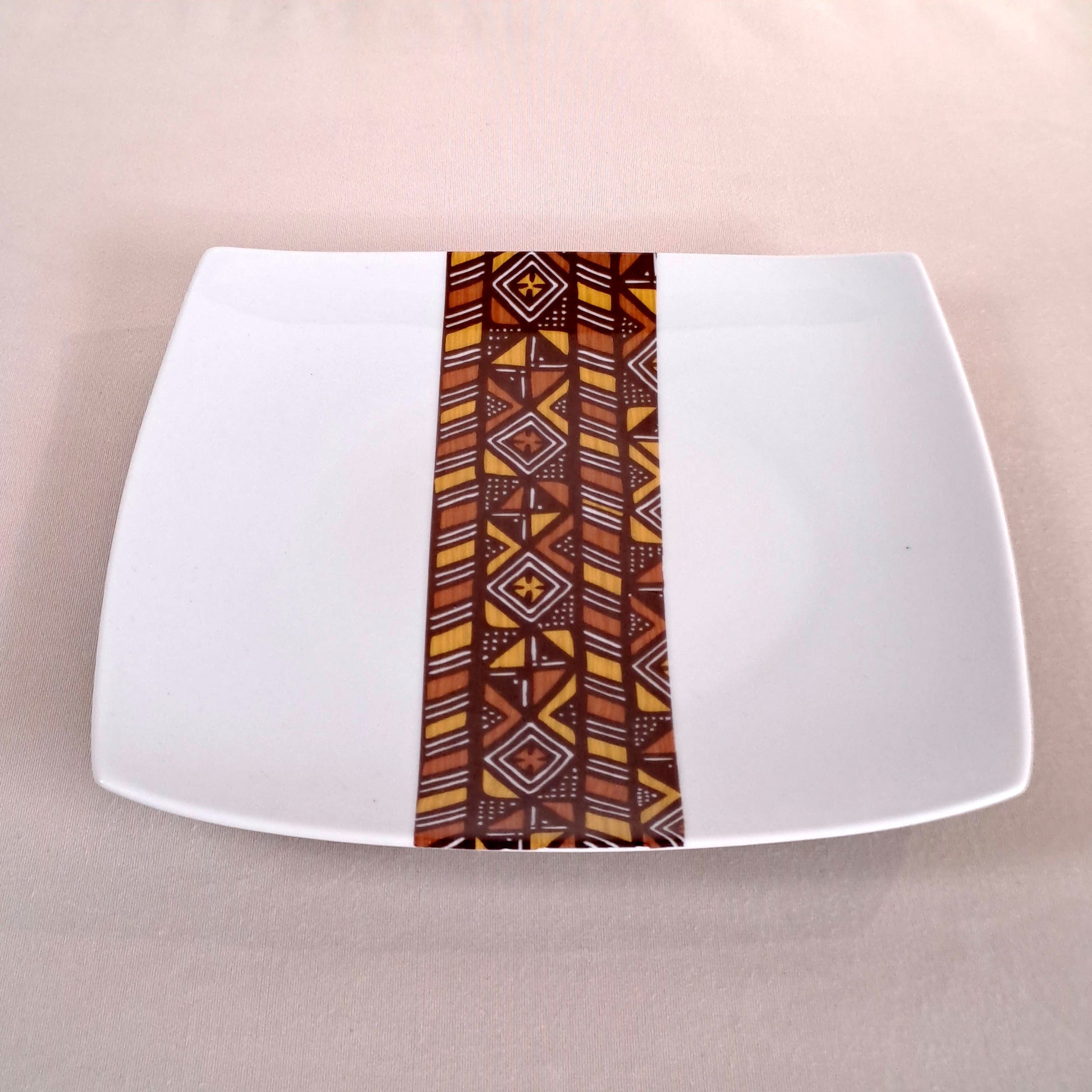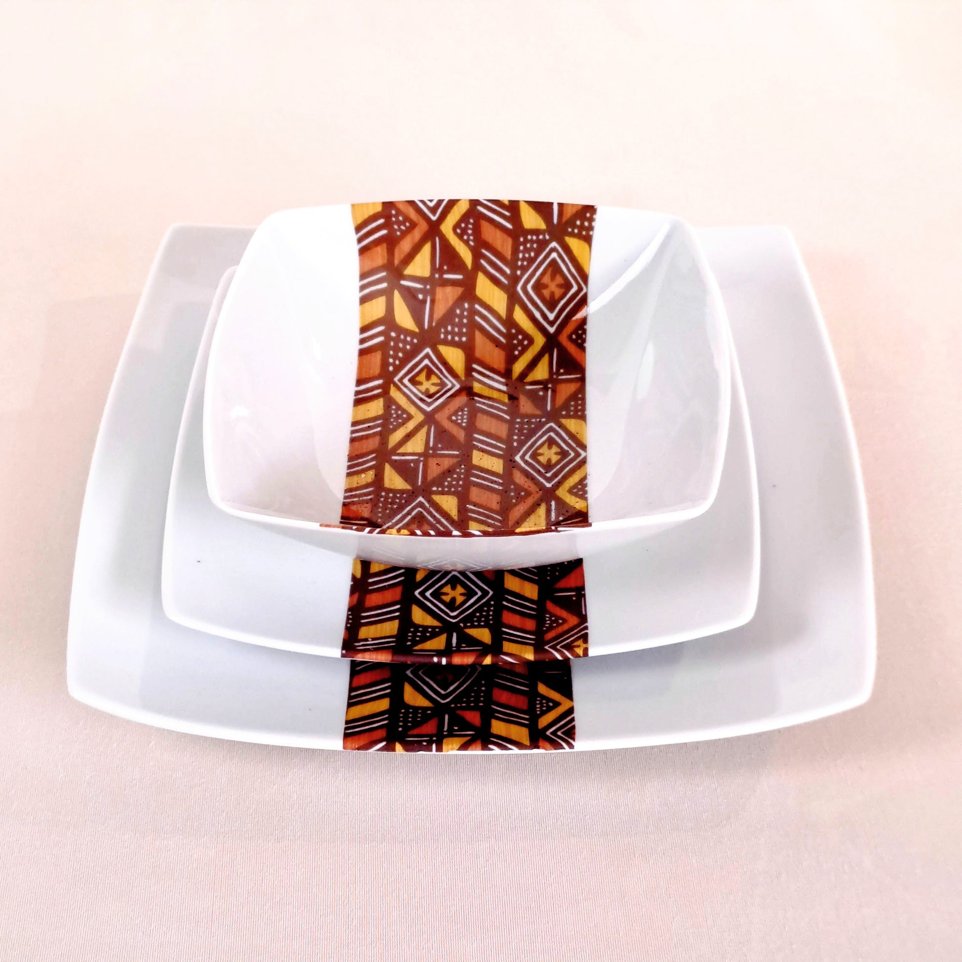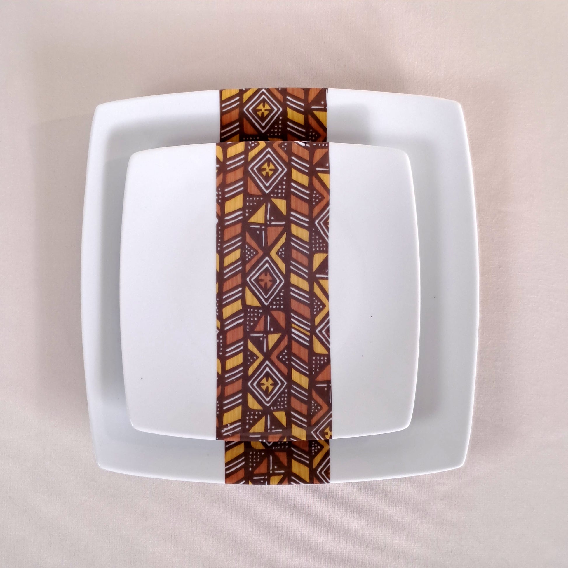 ✅ **Design unique** – Motif **Bogolan**, caractérisé par ses **bandes ethniques**, qui encadrent harmonieusement les plats et subliment leur présentation.