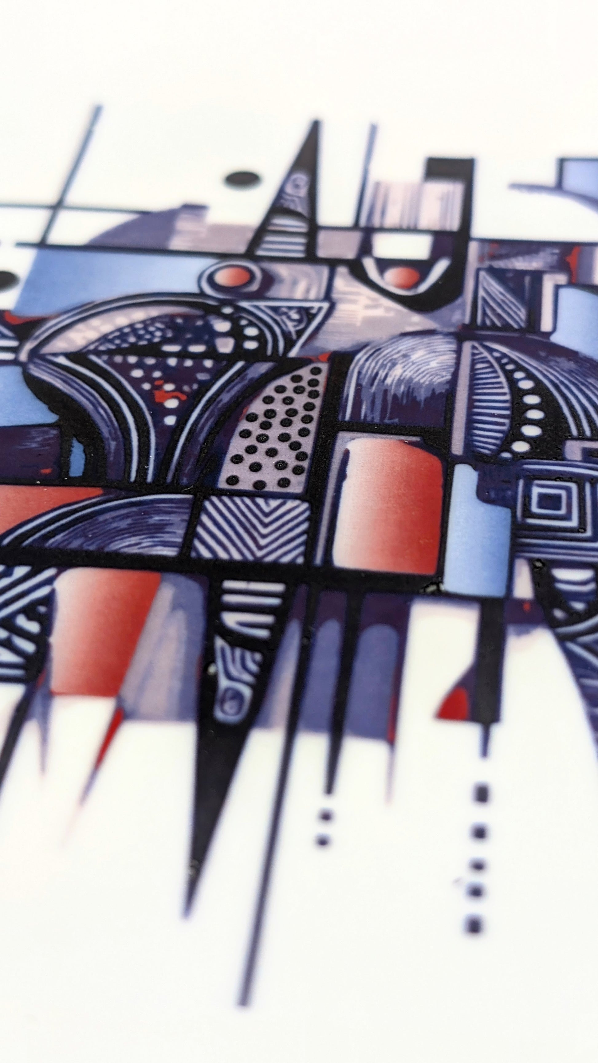 Coffret d'assiettes carrées en porcelaine fine Française fabriquées à la demande avec motif bande Ethnique d'Afrique "Artiste KHA 1" dans coffret de 6 assiettes