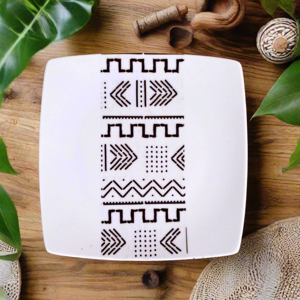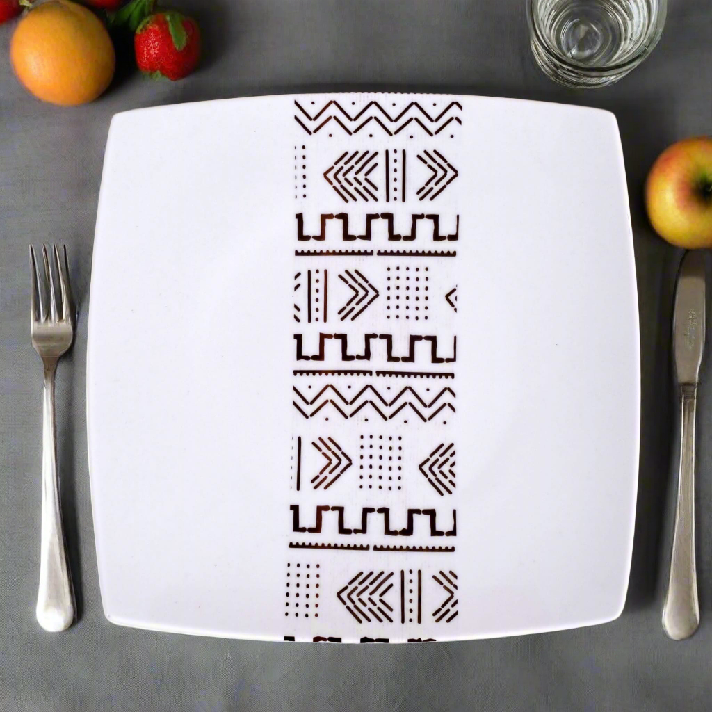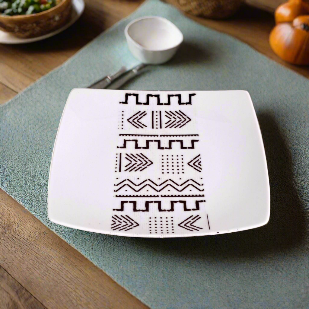 🟡 Coffret de 6 Assiettes Carrées en Porcelaine Fine – Motif Ethnique "#Kente ou Kita"
