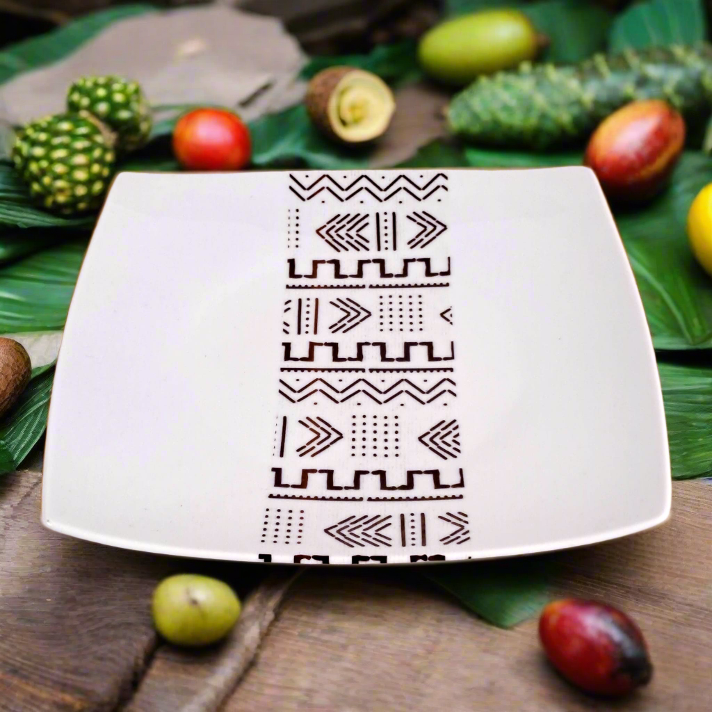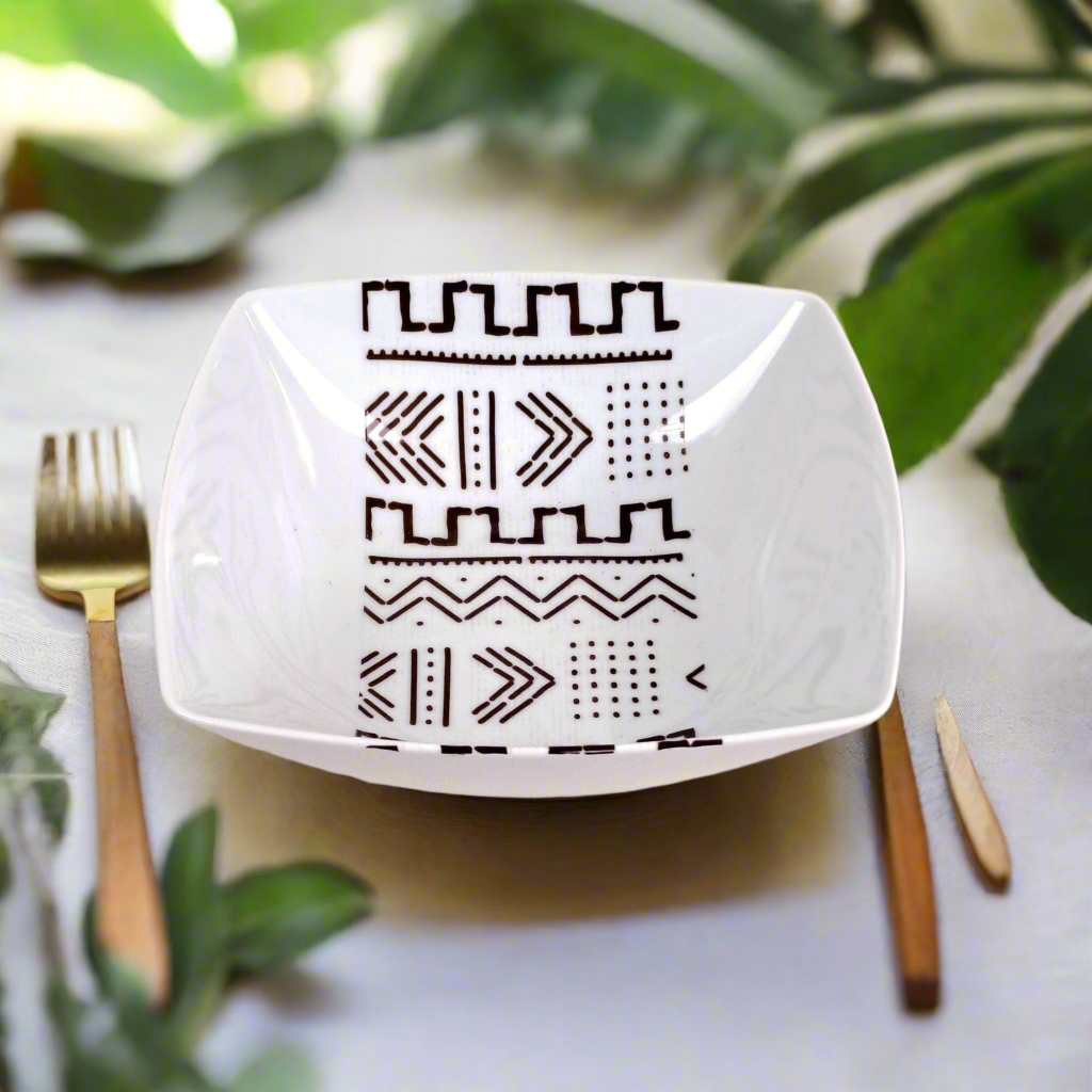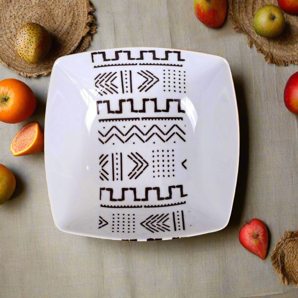 🟡 Coffret de 6 Assiettes Carrées en Porcelaine Fine – Motif Ethnique "#Kente ou Kita"