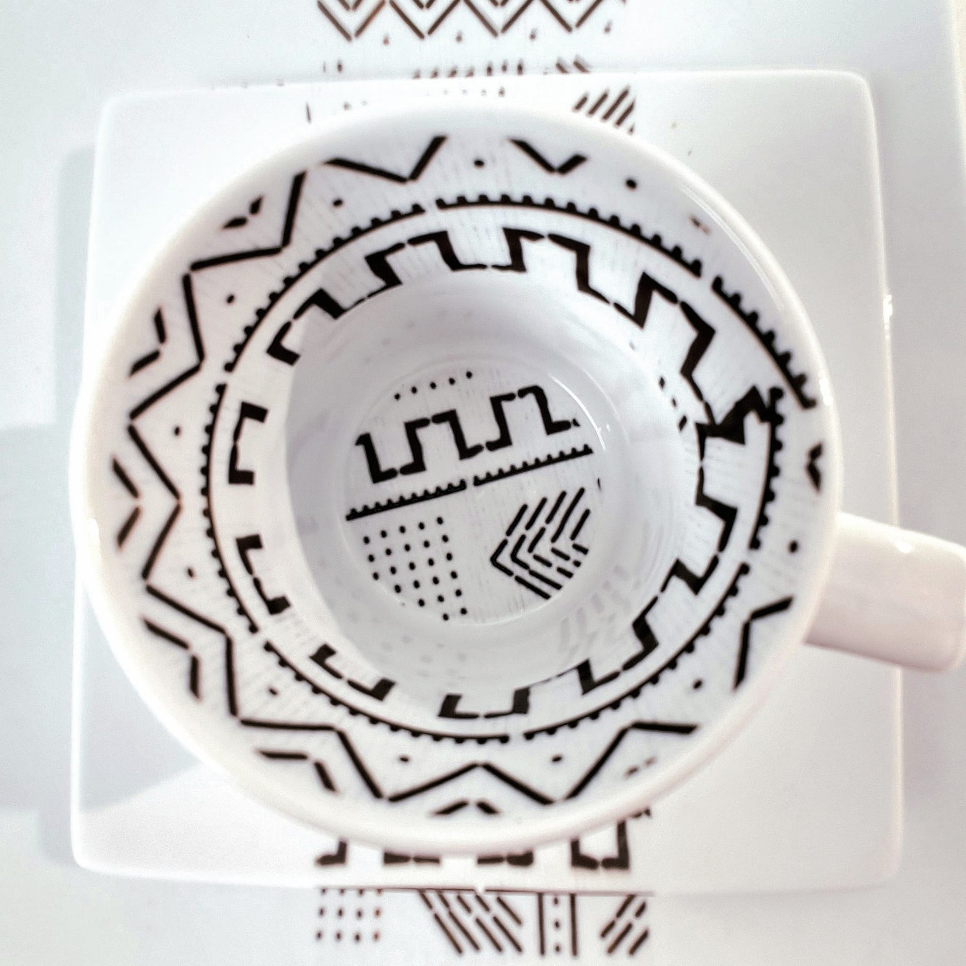 Ce coffret incarne l’interculturalité et l’héritage africain, en fusionnant l’élégance de la porcelaine française avec la symbolique profonde du tissu Kente. Chaque assiette devient une œuvre d’art fonctionnelle, racontant l’histoire des tisserands du Ghana et du Togo, inspirés par la nature, les légendes et les valeurs communautaires.