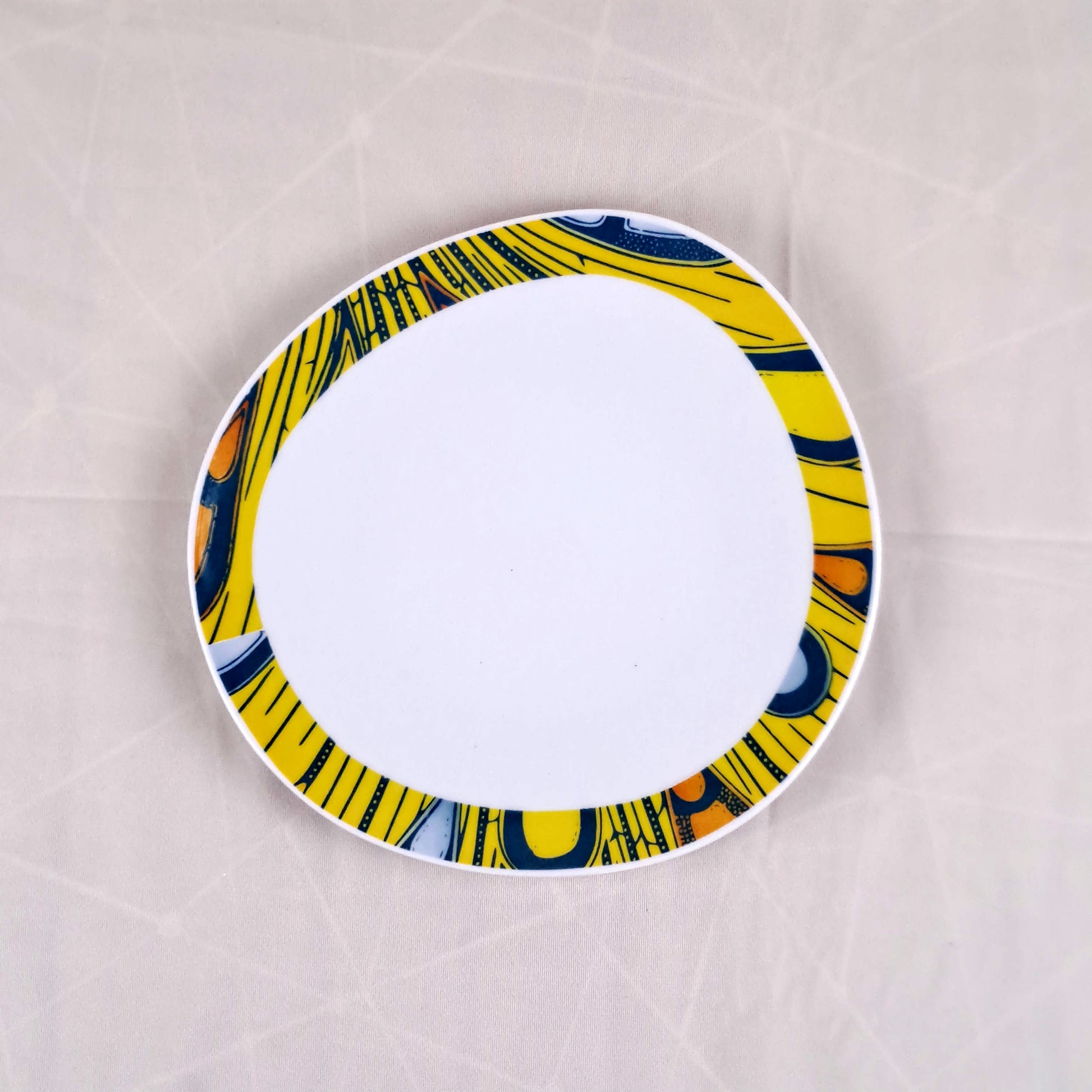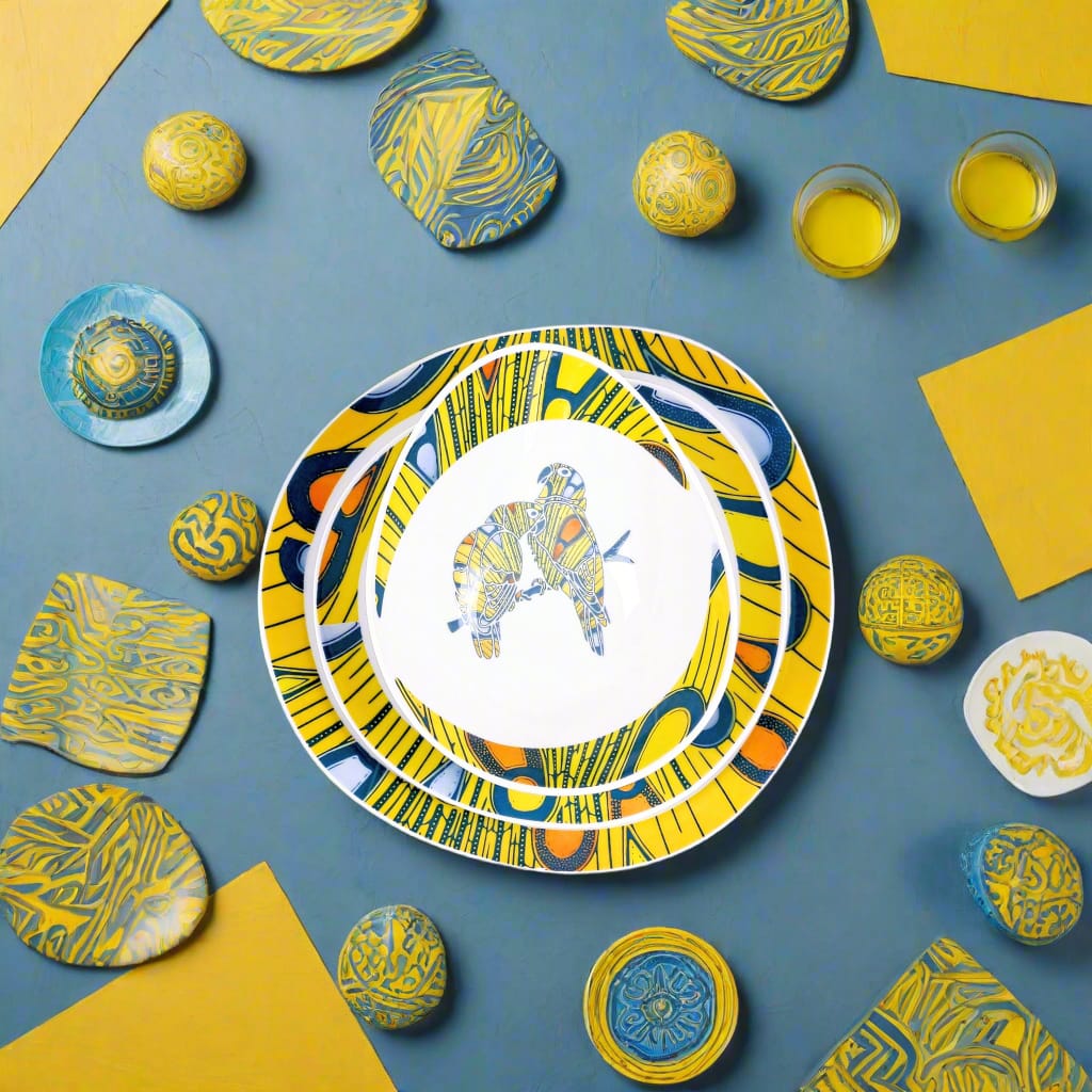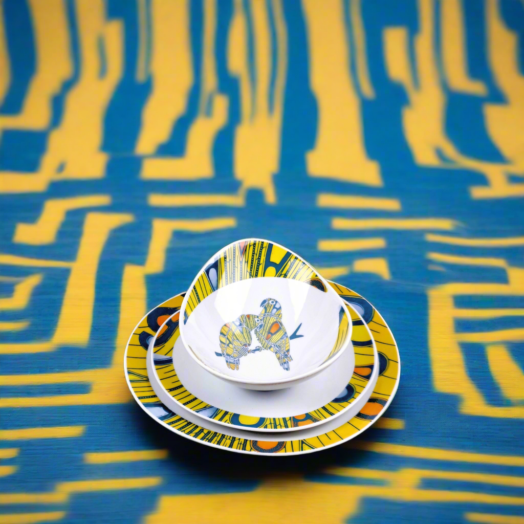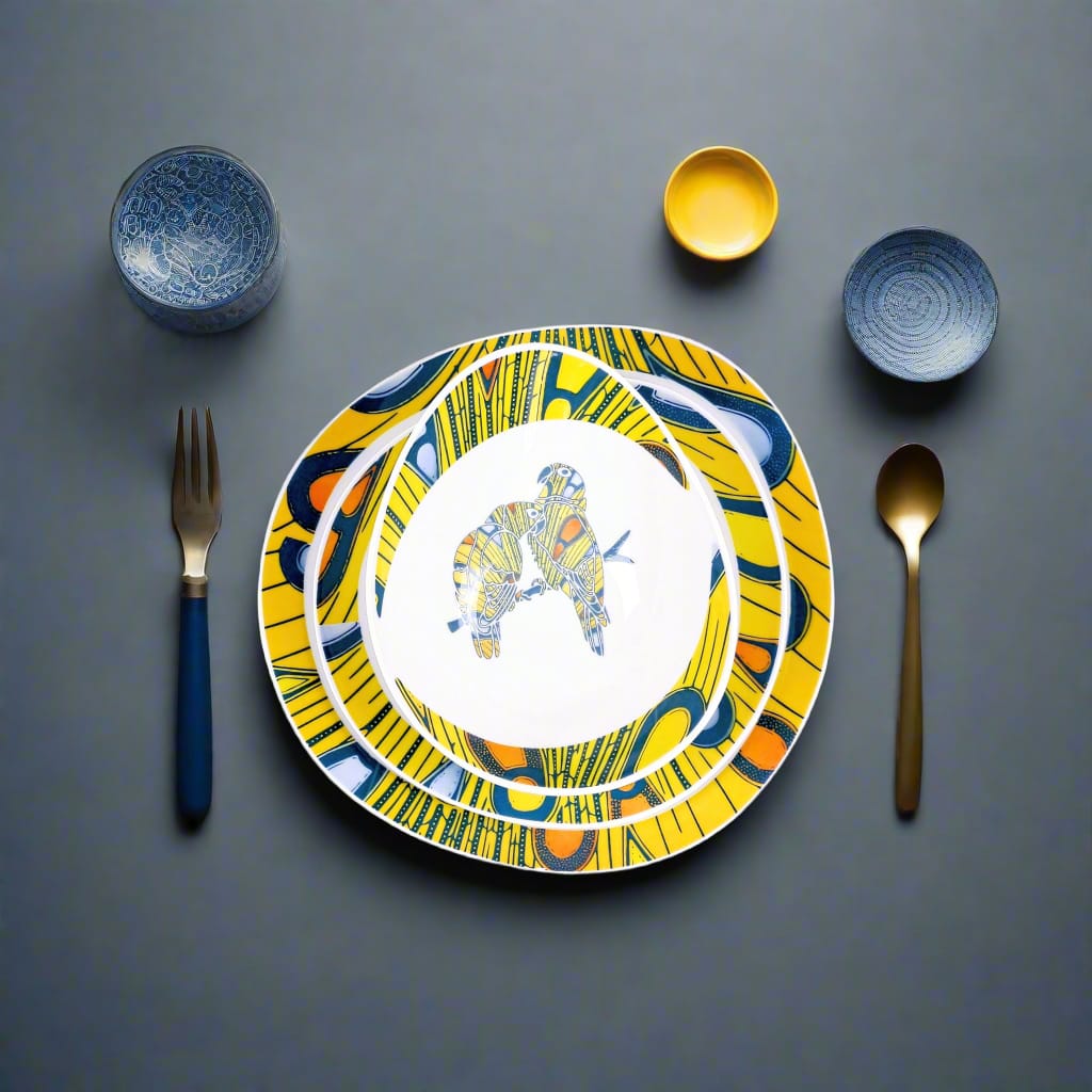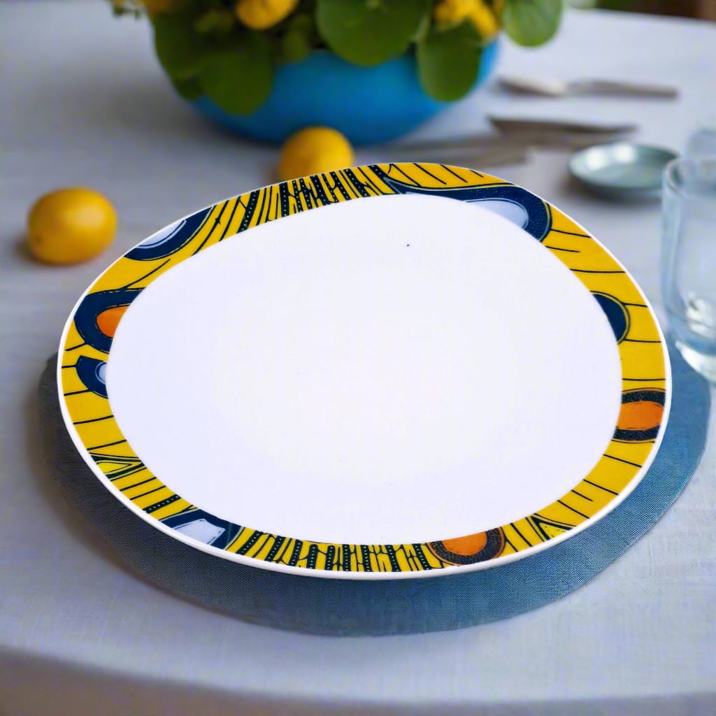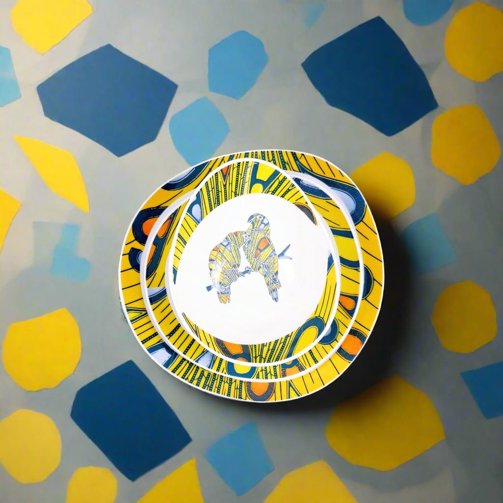 Offrez à votre table une touche d'élégance artisanale et culturelle avec ce coffret de 6 assiettes en porcelaine fine, sublimées par un motif inspiré des tissus Wax d’Afrique. Une pièce d’exception, fabriquée en France à la demande, qui allie design contemporain, symbolisme fort et savoir-faire.
