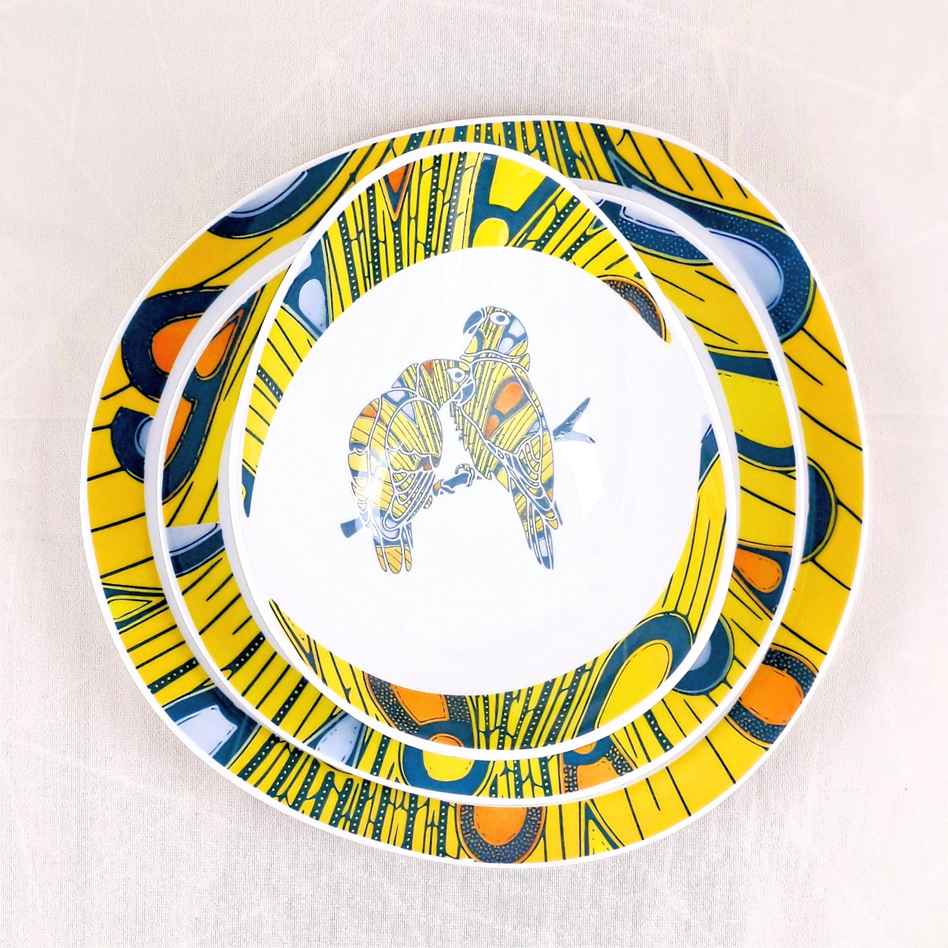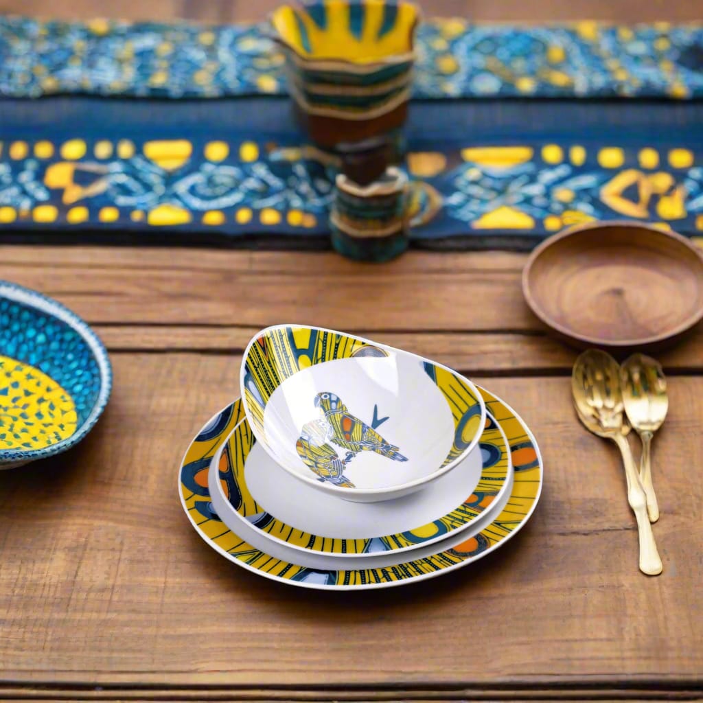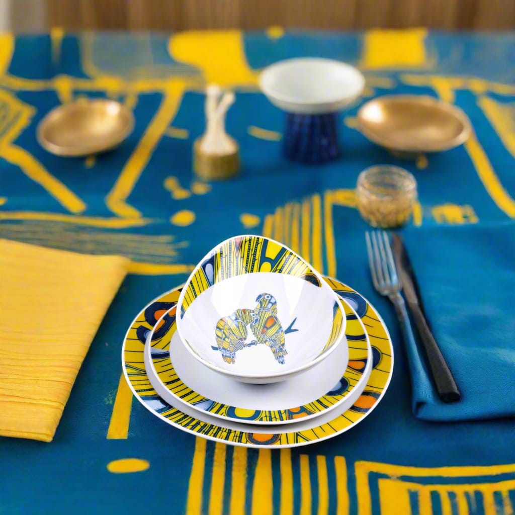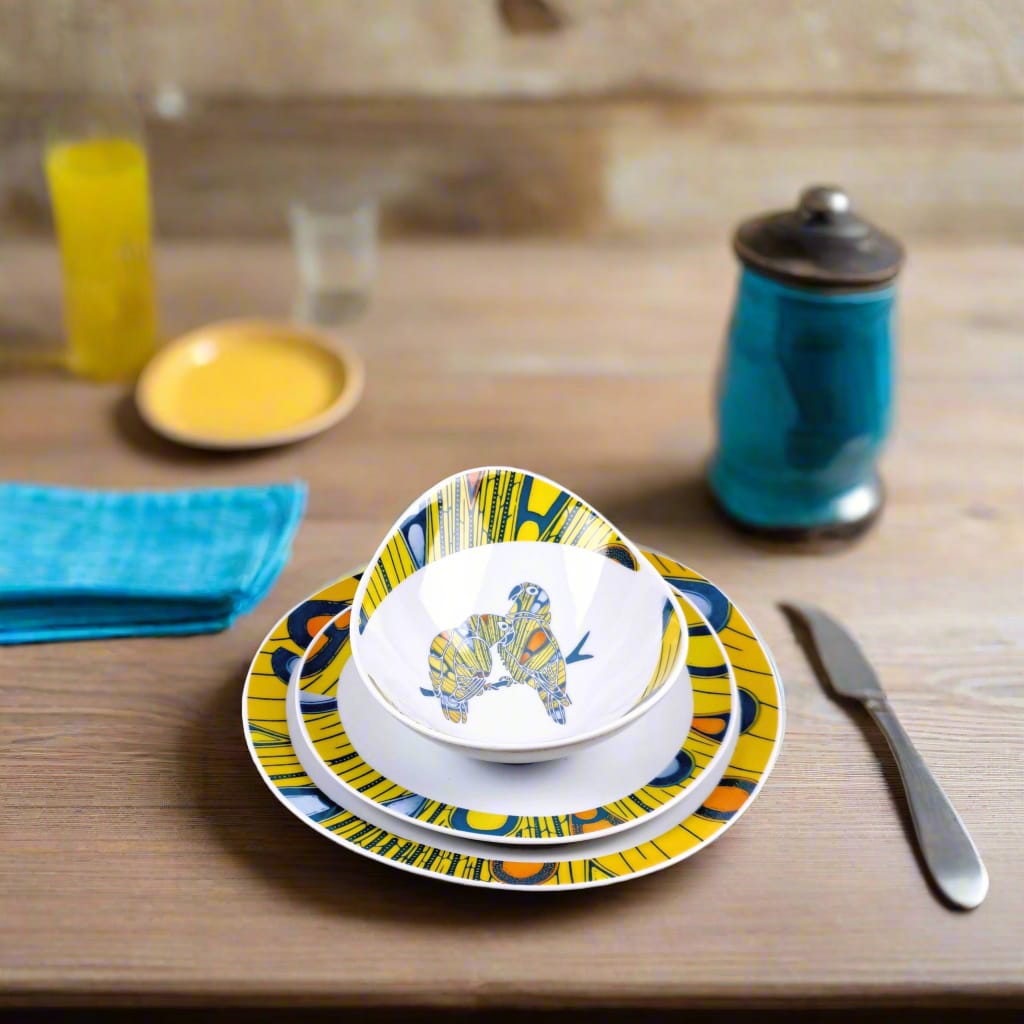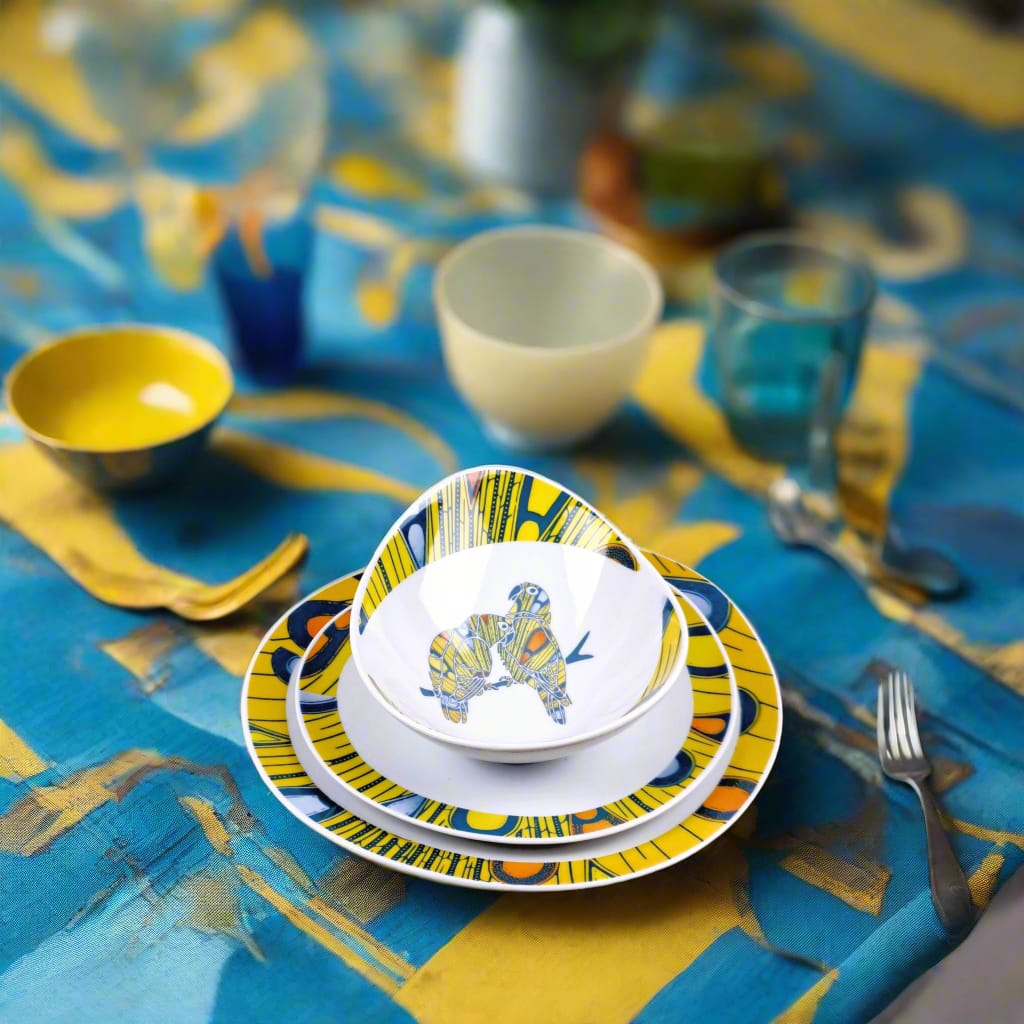 Offrez à votre table une touche d'élégance artisanale et culturelle avec ce coffret de 6 assiettes en porcelaine fine, sublimées par un motif inspiré des tissus Wax d’Afrique. Une pièce d’exception, fabriquée en France à la demande, qui allie design contemporain, symbolisme fort et savoir-faire.