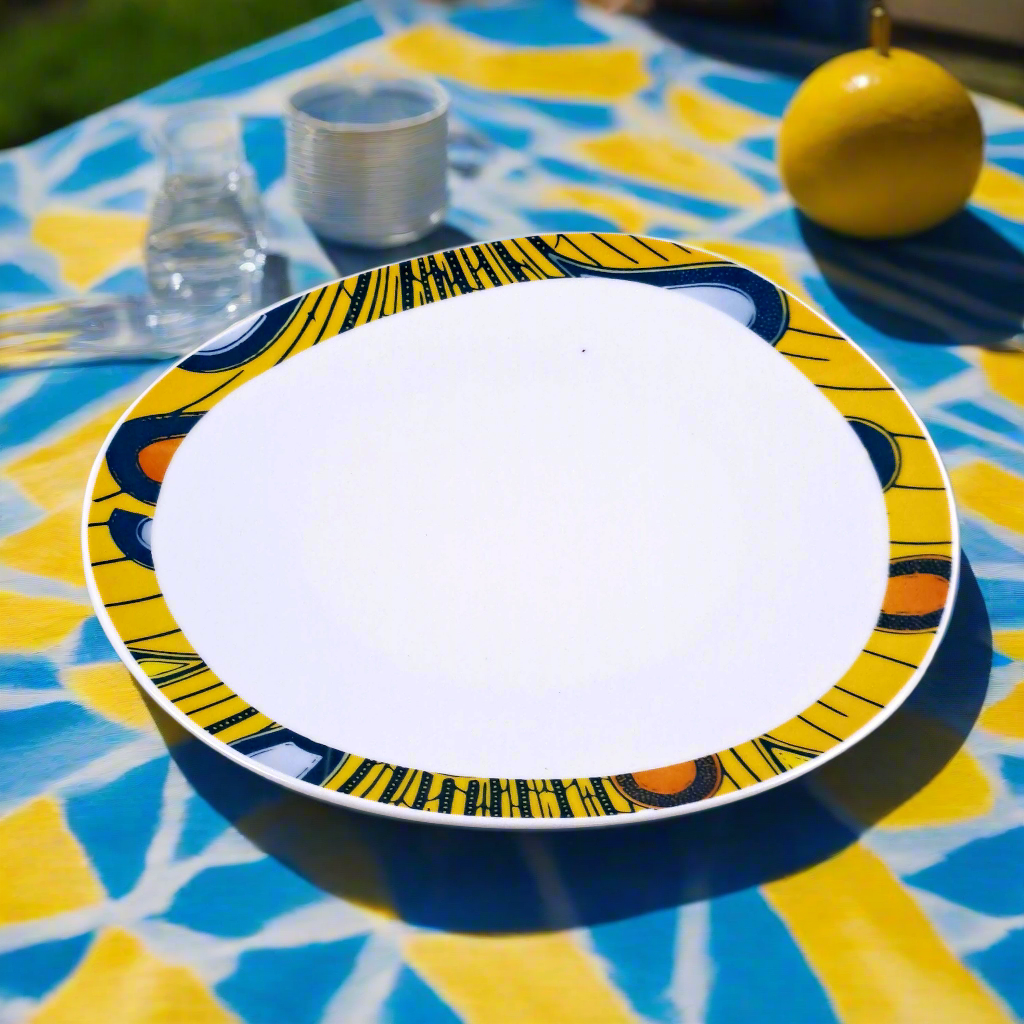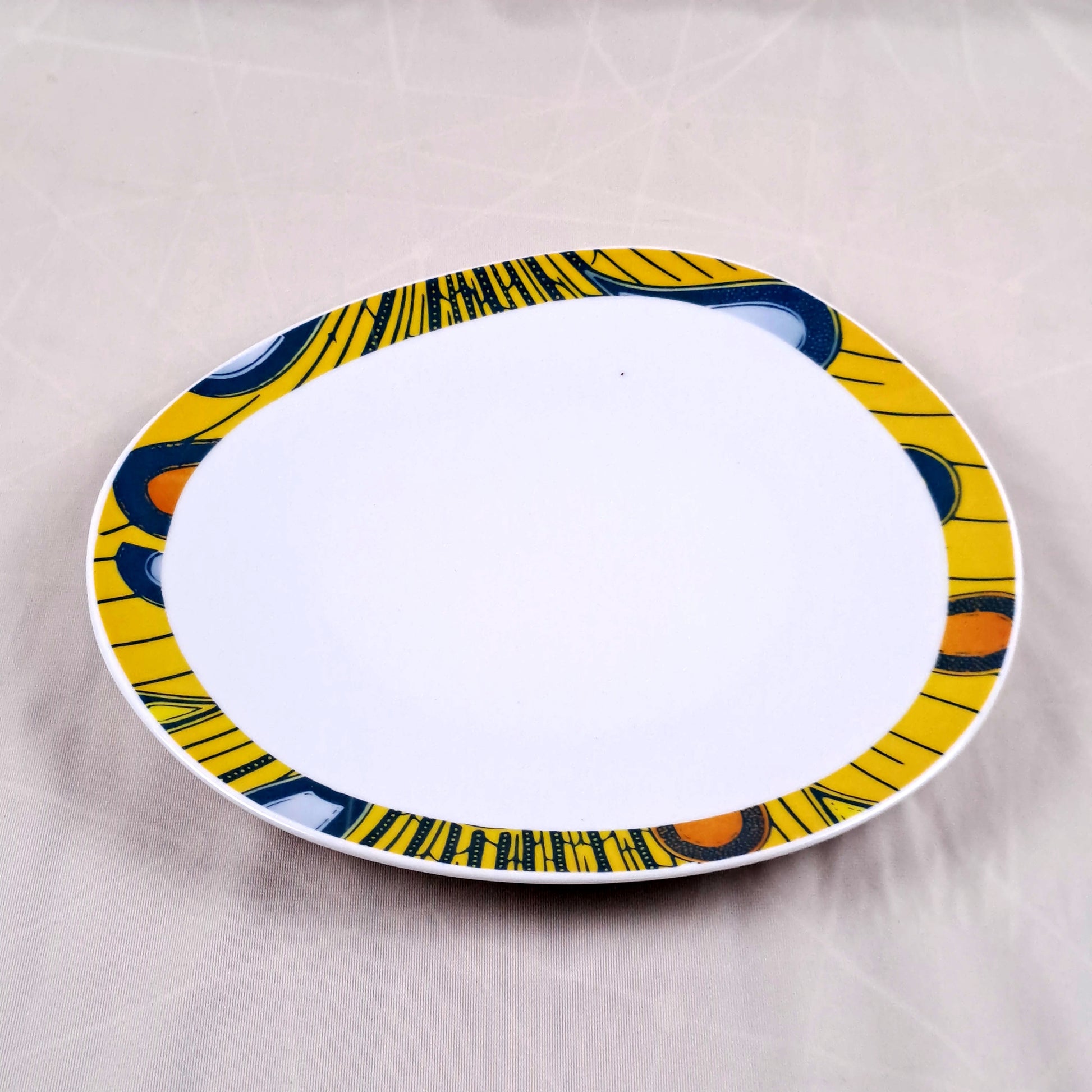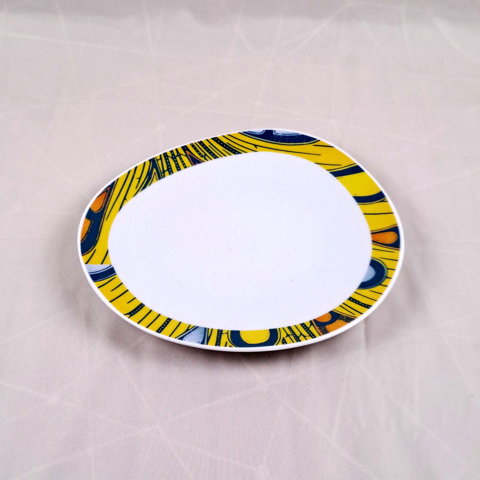 Coffret de 6 Assiettes Ovales en Porcelaine Fine – Motif Wax Africain “Electric Bulb” – Fabrication française personnalisable