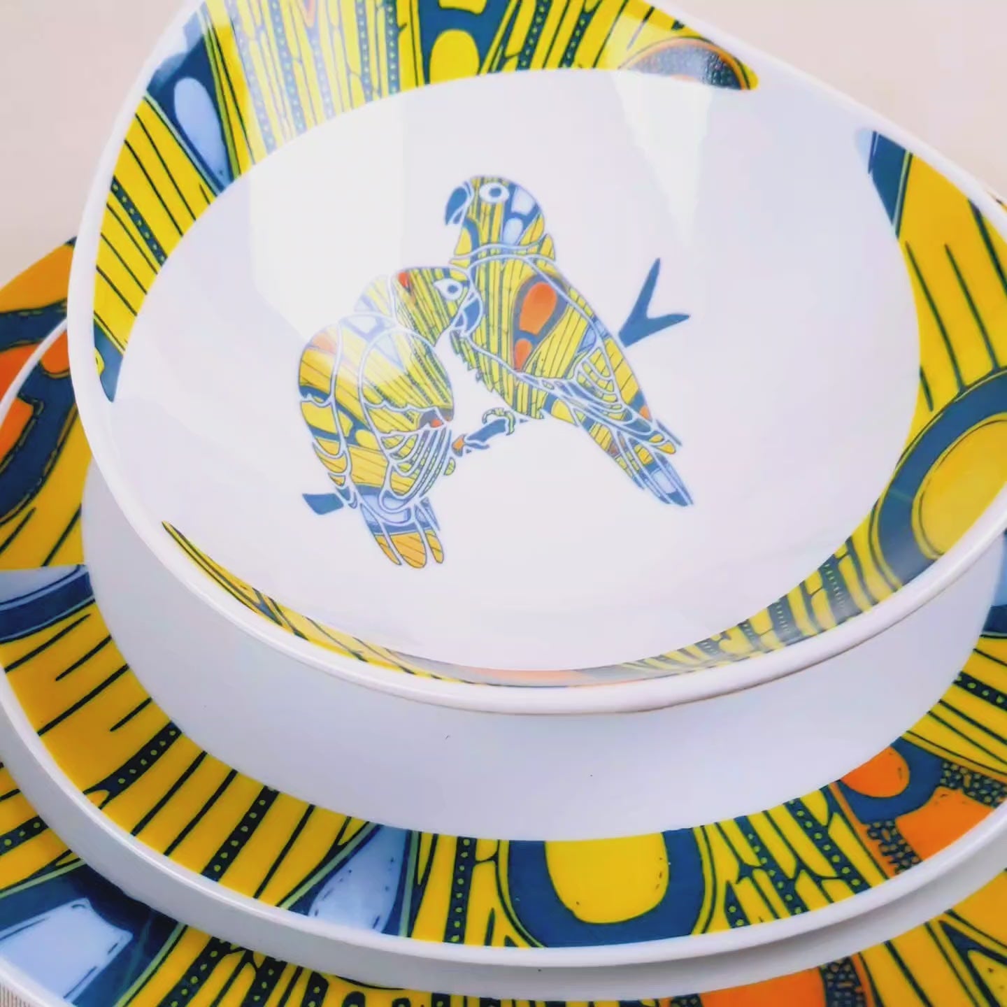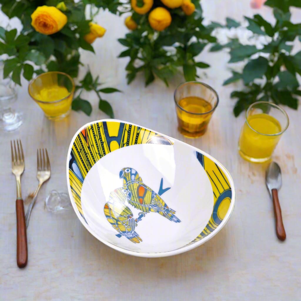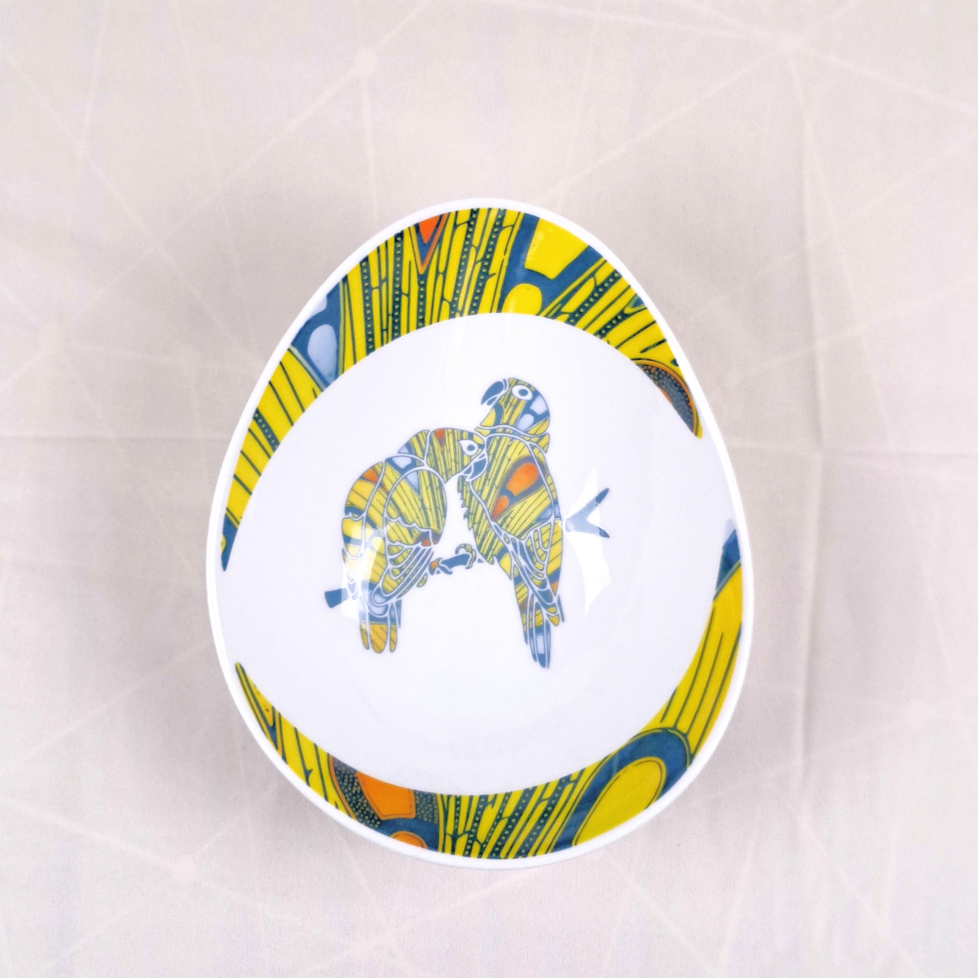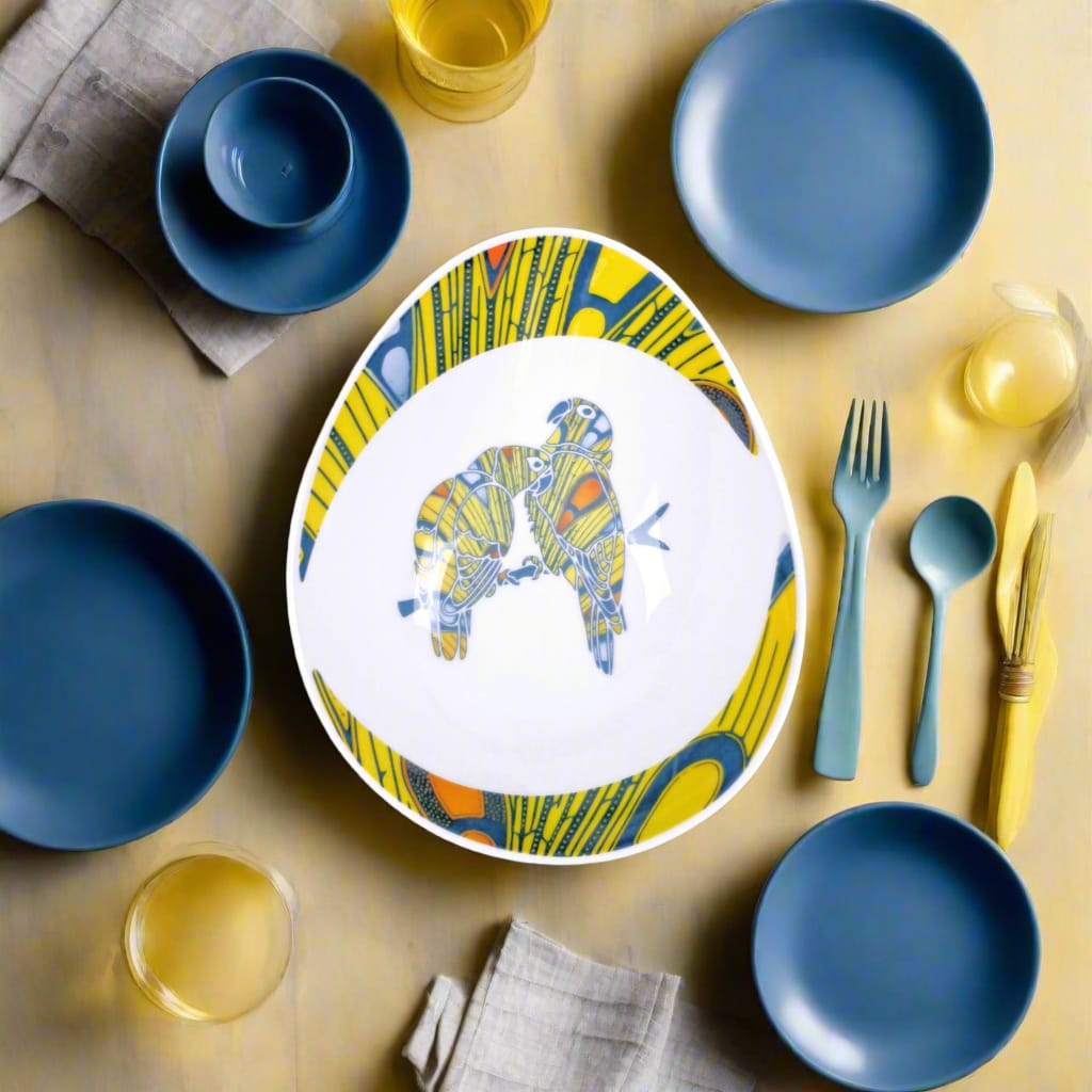 Coffret de 6 Assiettes Ovales en Porcelaine Fine – Motif Wax Africain “Electric Bulb” – Fabrication française personnalisable
