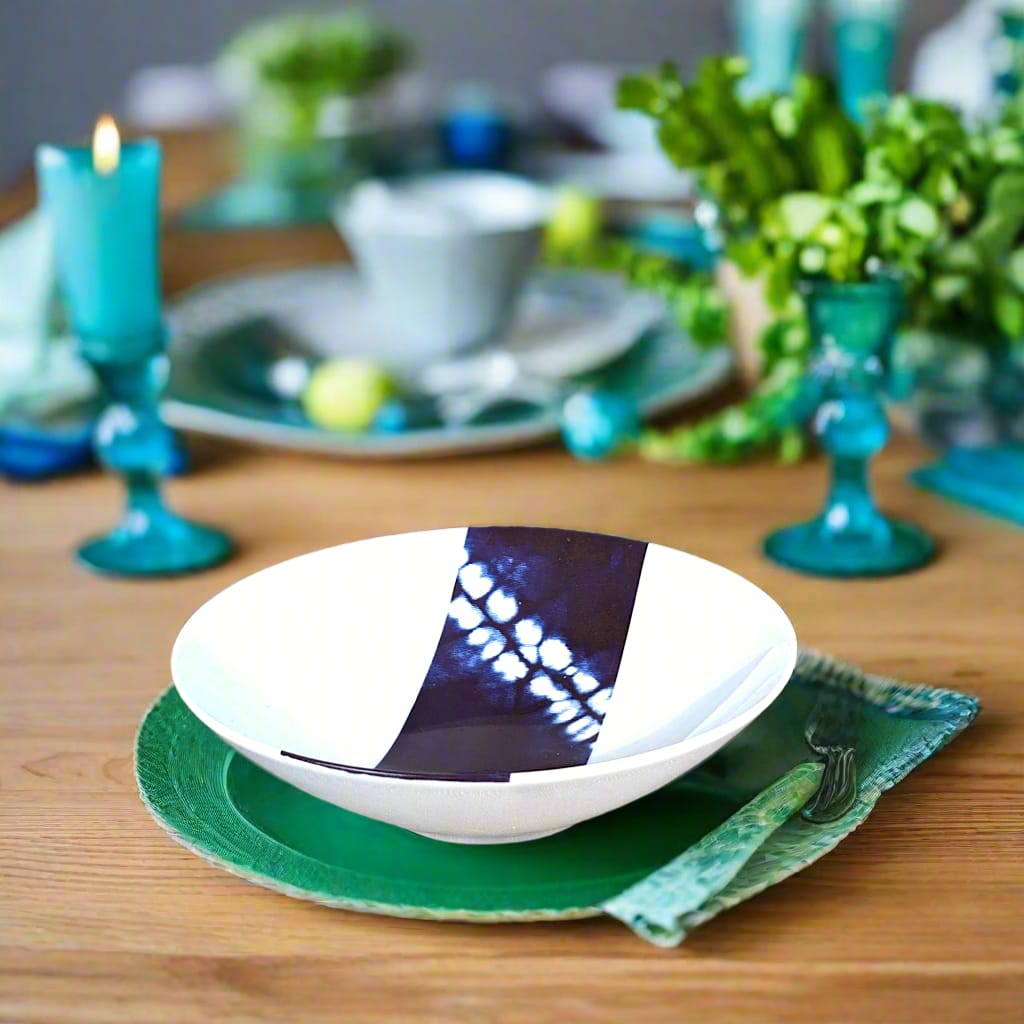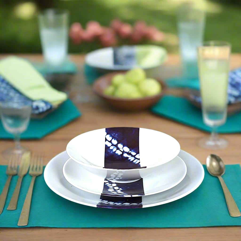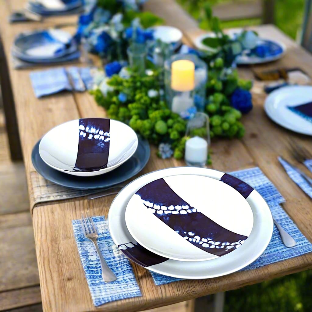 ✅ **Design unique** – Motif **Indigo bleu**, caractérisé par ses **anneaux larges**, qui encadrent harmonieusement les plats et subliment leur présentation.
