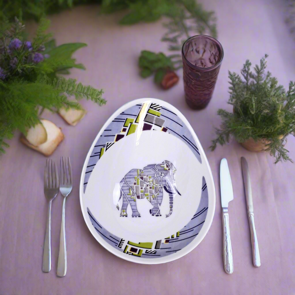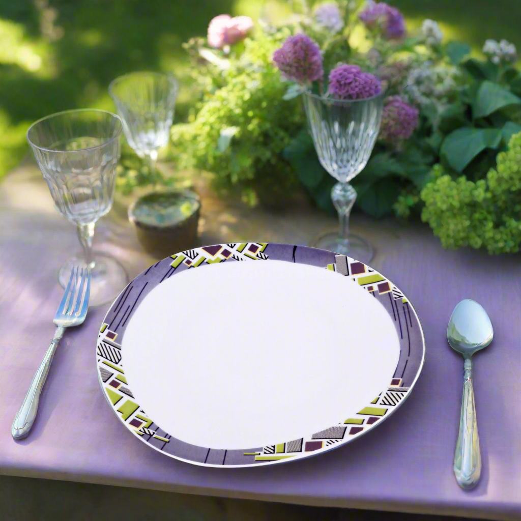 Coffret de 6 Assiettes Ovales en Porcelaine Fine – Motif Wax Africain “Milliardaire” – Fabrication française personnalisable
