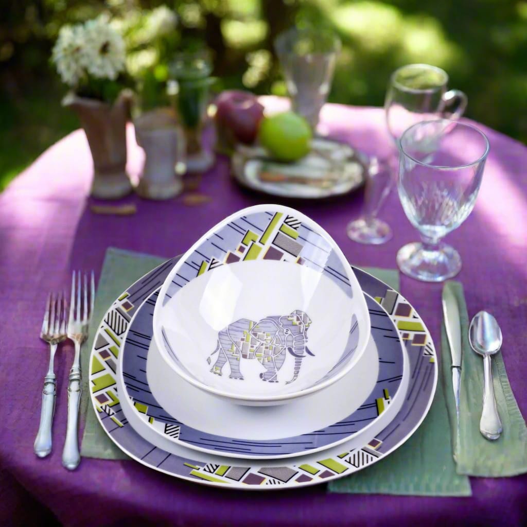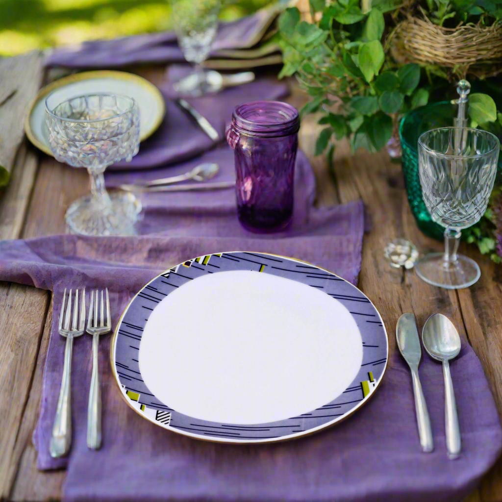 Fabriquées localement avec une porcelaine de haute qualité, ces assiettes allient finesse, éclat et robustesse. Un hommage à l’art de la table à la française, revisité avec une touche afro-contemporaine.