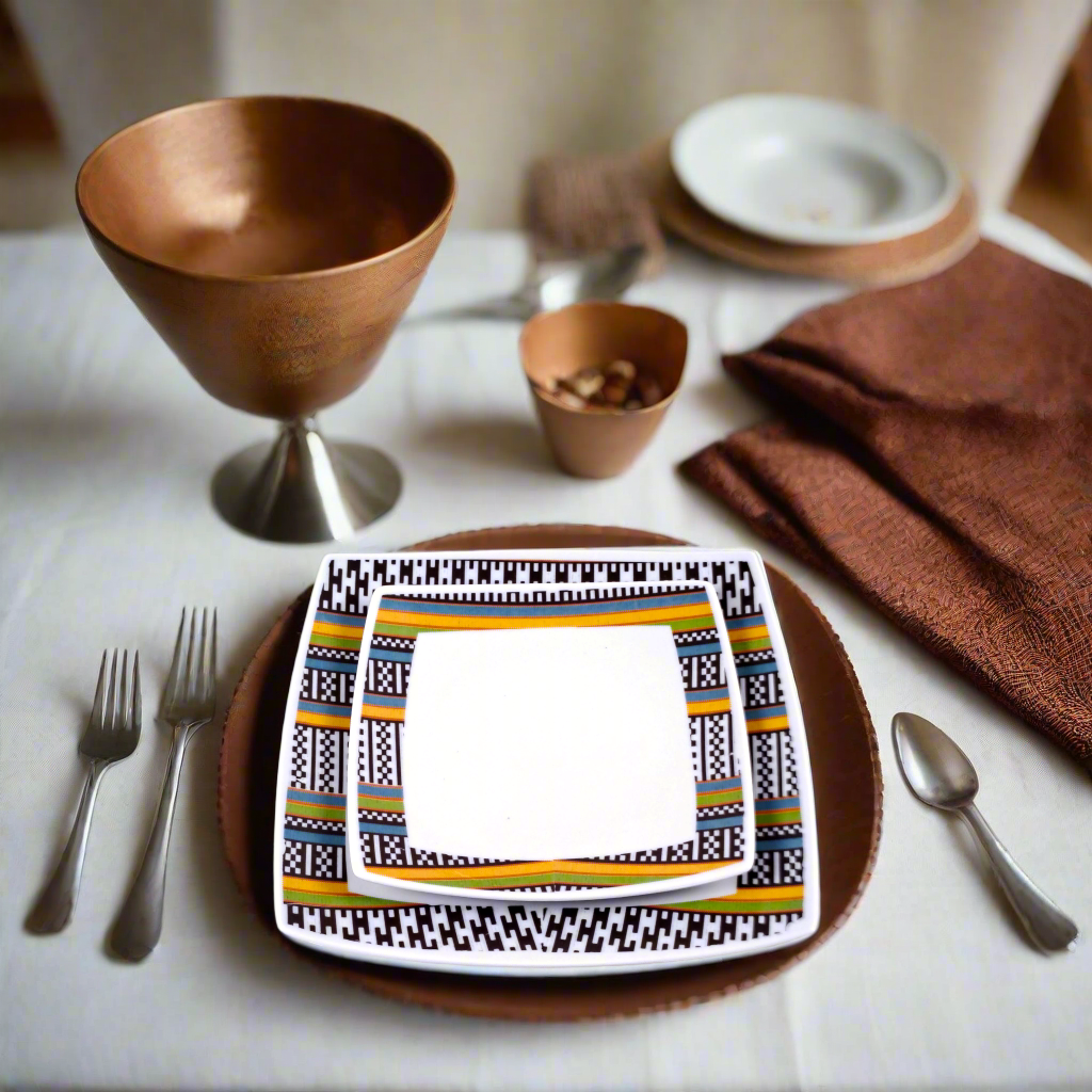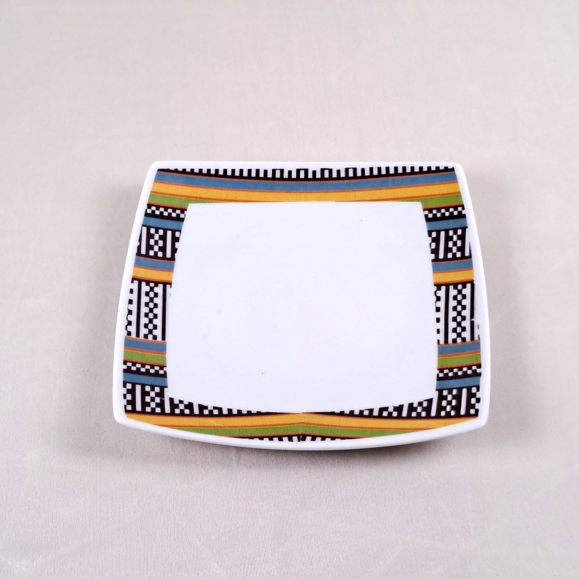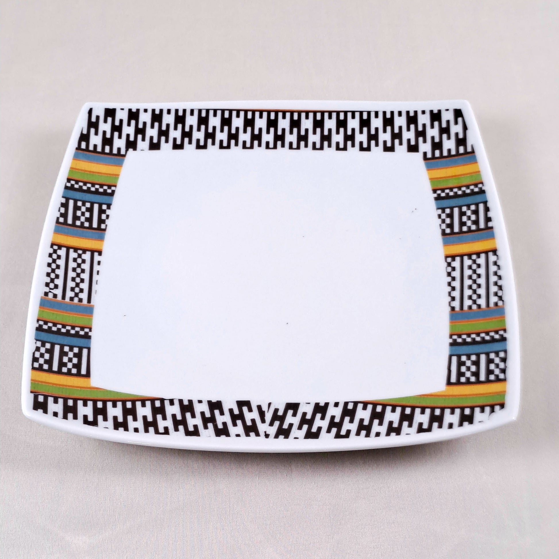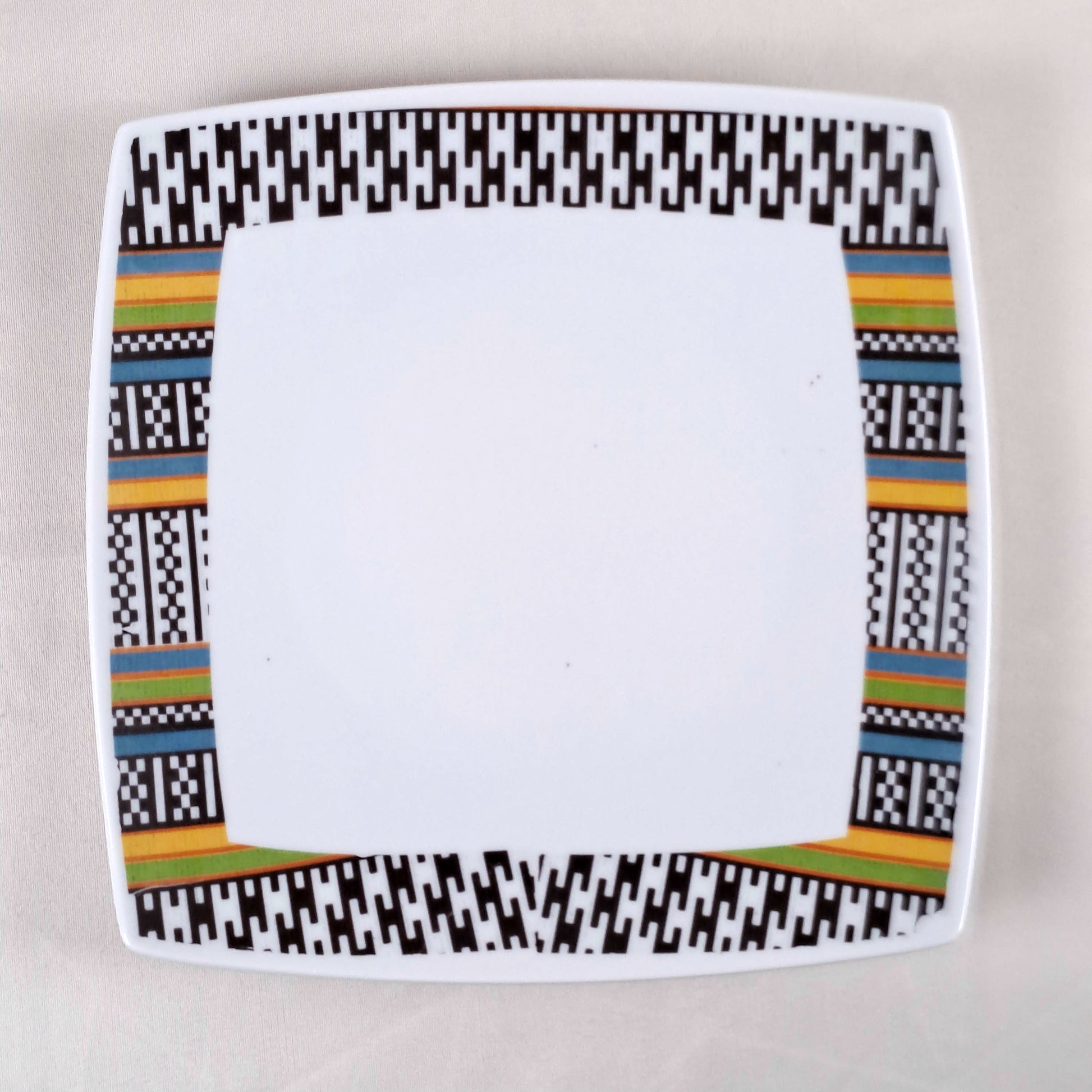 ### **Coffret de 6 Assiettes Carrées en Porcelaine Fine – Motif "Kounta" ou "Kanta" du Niger**