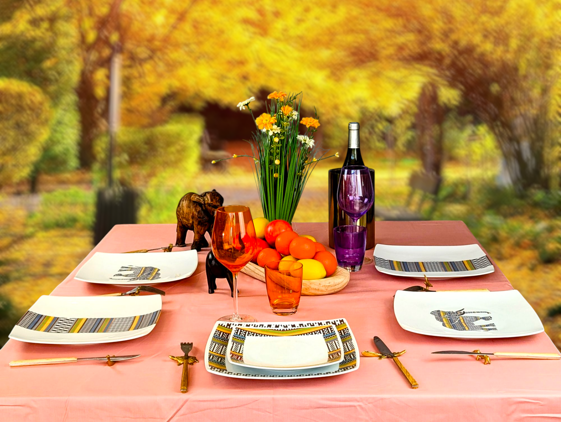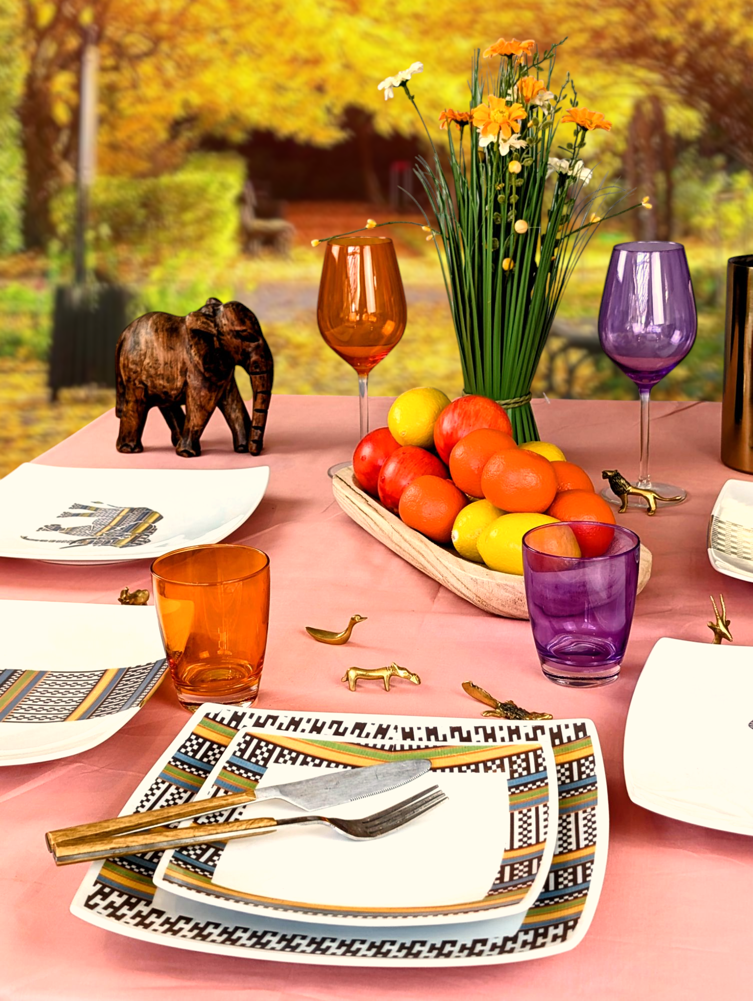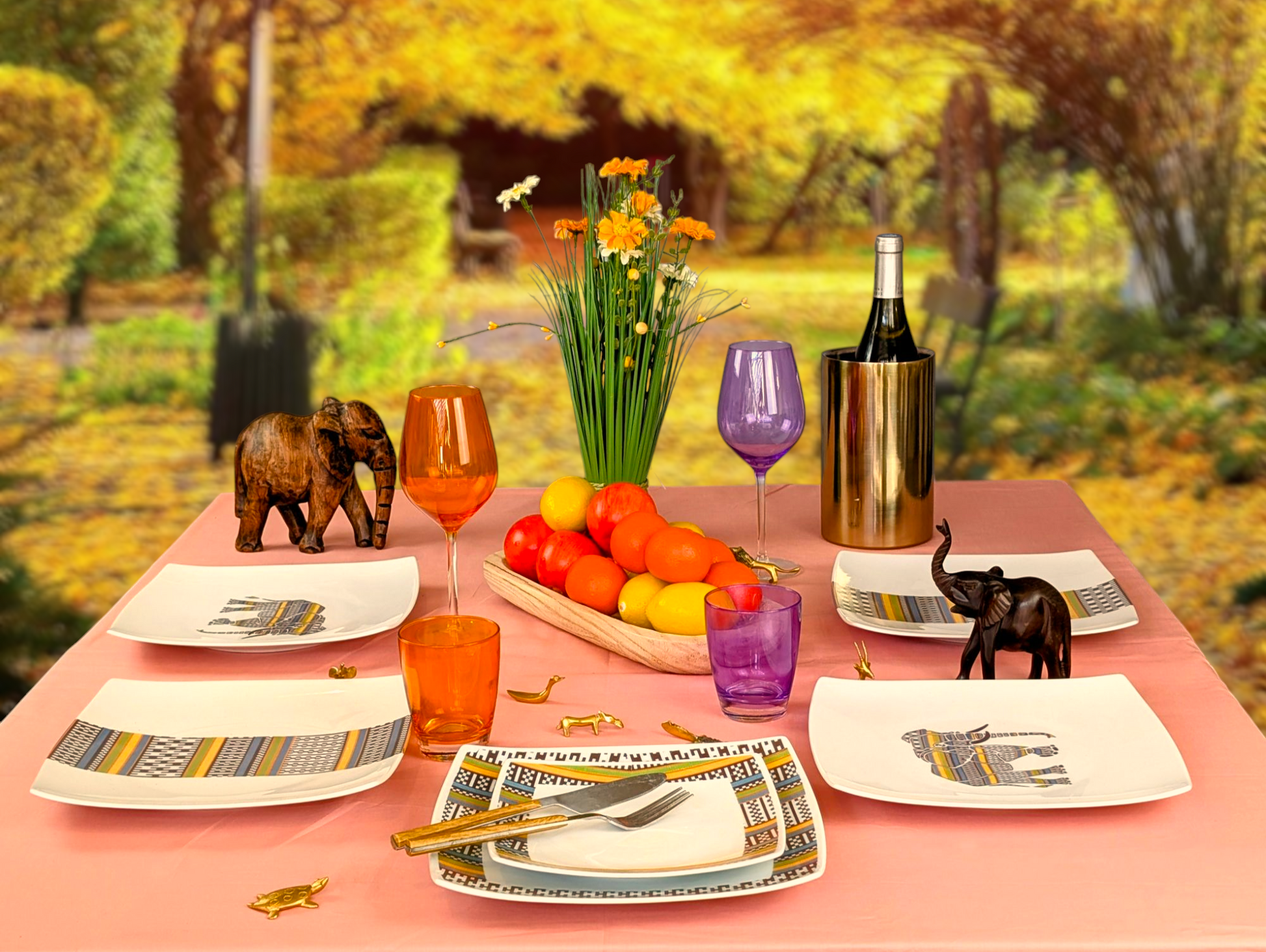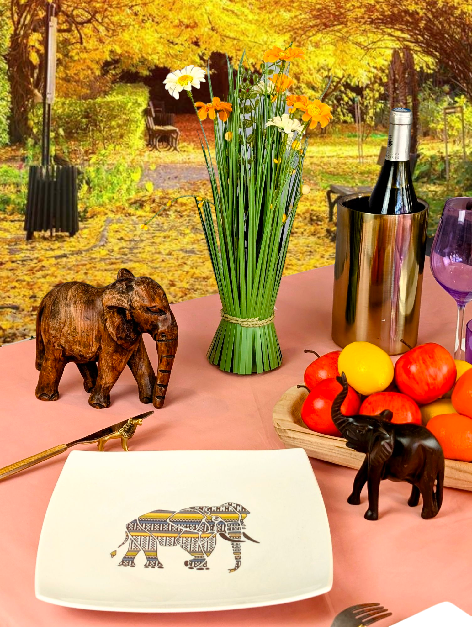✅ **Élément central distinctif** – Un **éléphant orné du tissu Kanta**, positionné au centre de l’assiette creuse, permettant de l’utiliser comme une **assiette d’apparat**.