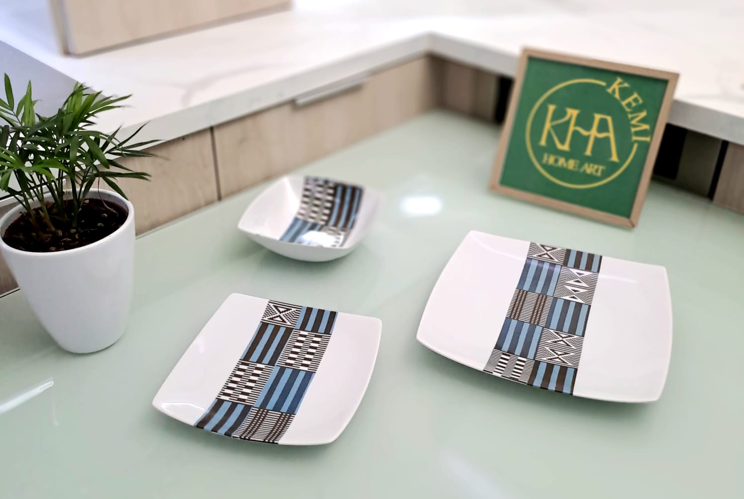 Ajoutez une touche d’authenticité et de tradition africaine à votre table avec ce superbe coffret d’assiettes en porcelaine fine française, inspiré du motif **Kounta ou Kanta**, emblématique du Niger.
