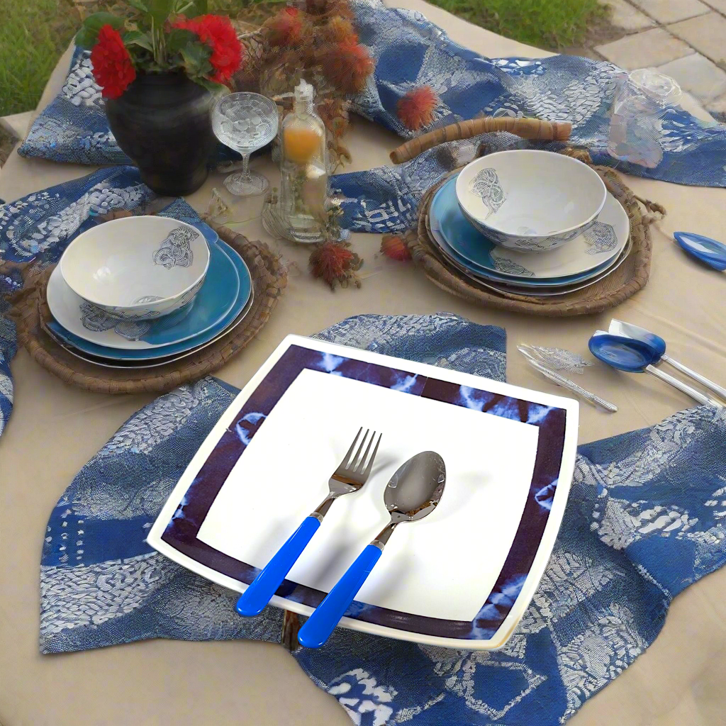 ✅ **Design unique** – Motif **Indigo bleu nuit**, caractérisé par ses **teintes profondes et vibrantes**, qui encadrent harmonieusement les plats et subliment leur présentation.