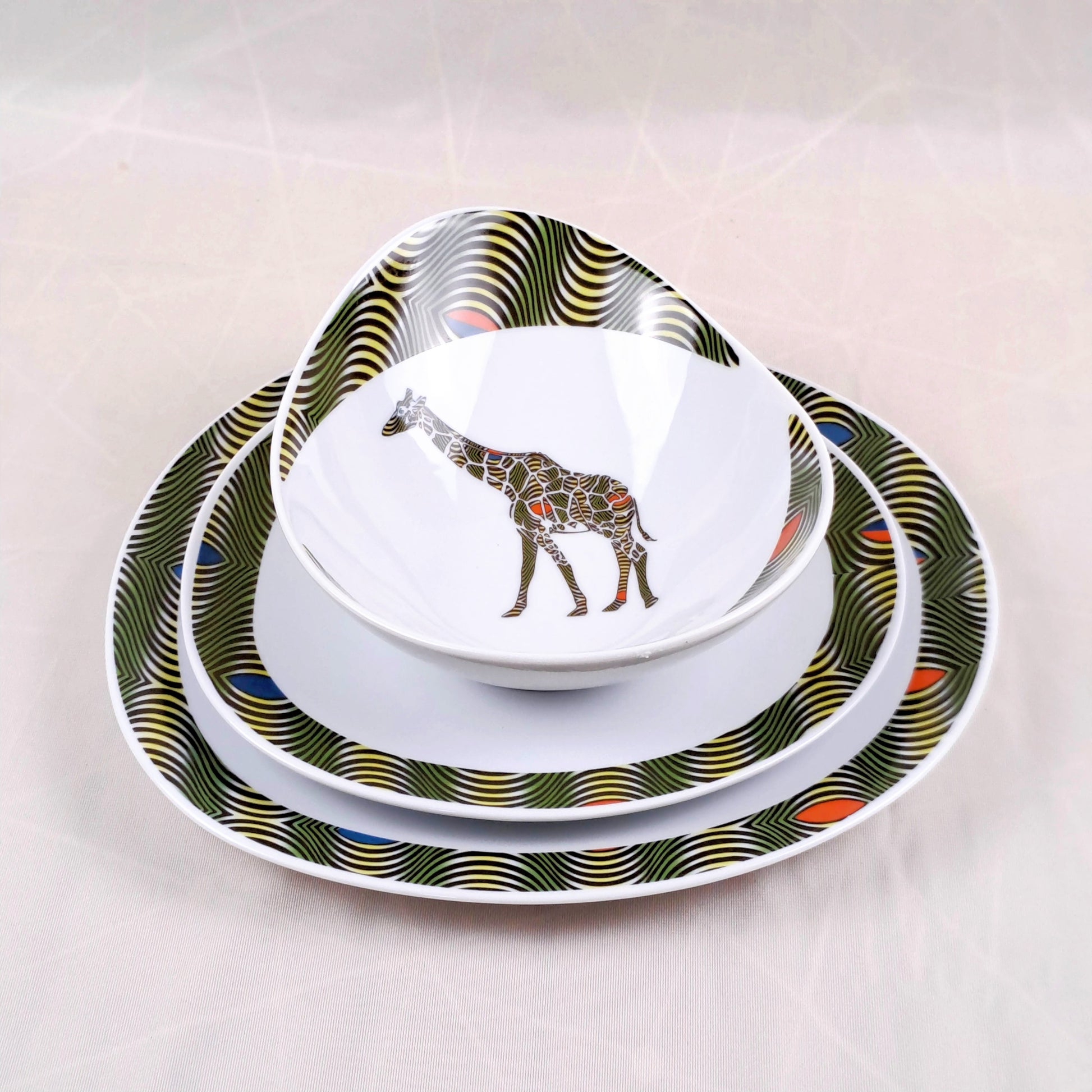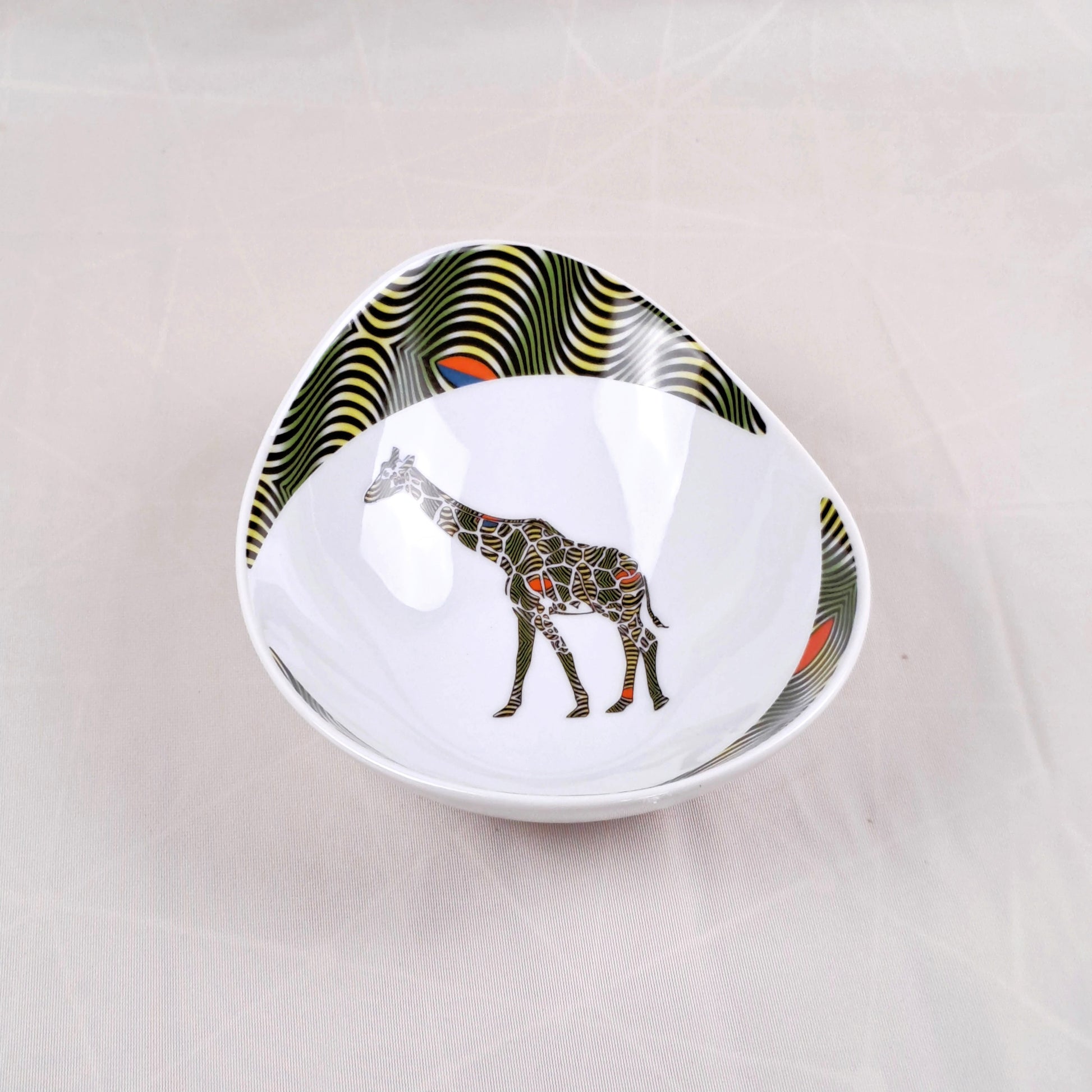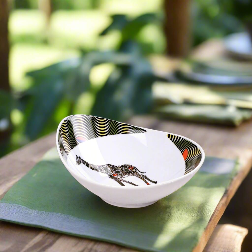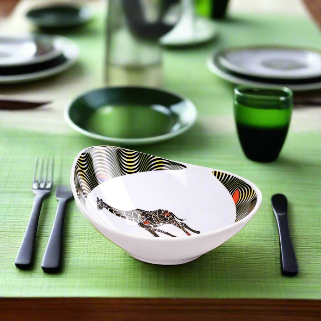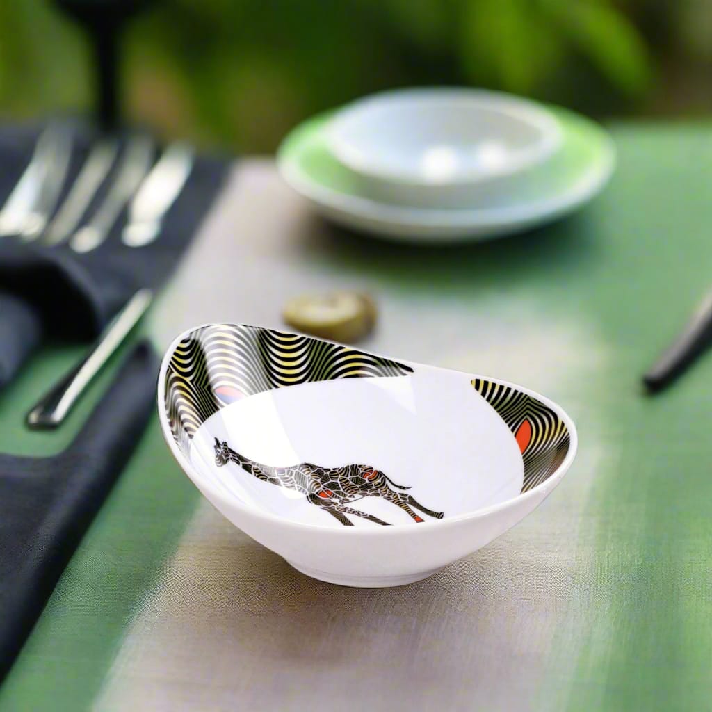 Ce motif intense et intrigant, souvent associé au regard symbolique que l’on porte sur l’autre, puise dans les traditions narratives du textile WAX. “Œil de ma Rivale” exprime à la fois vigilance, confiance en soi et affirmation. Avec son graphisme circulaire puissant, il transforme chaque assiette en objet de conversation, tout en faisant rayonner la richesse du patrimoine africain à travers l’art de la table.