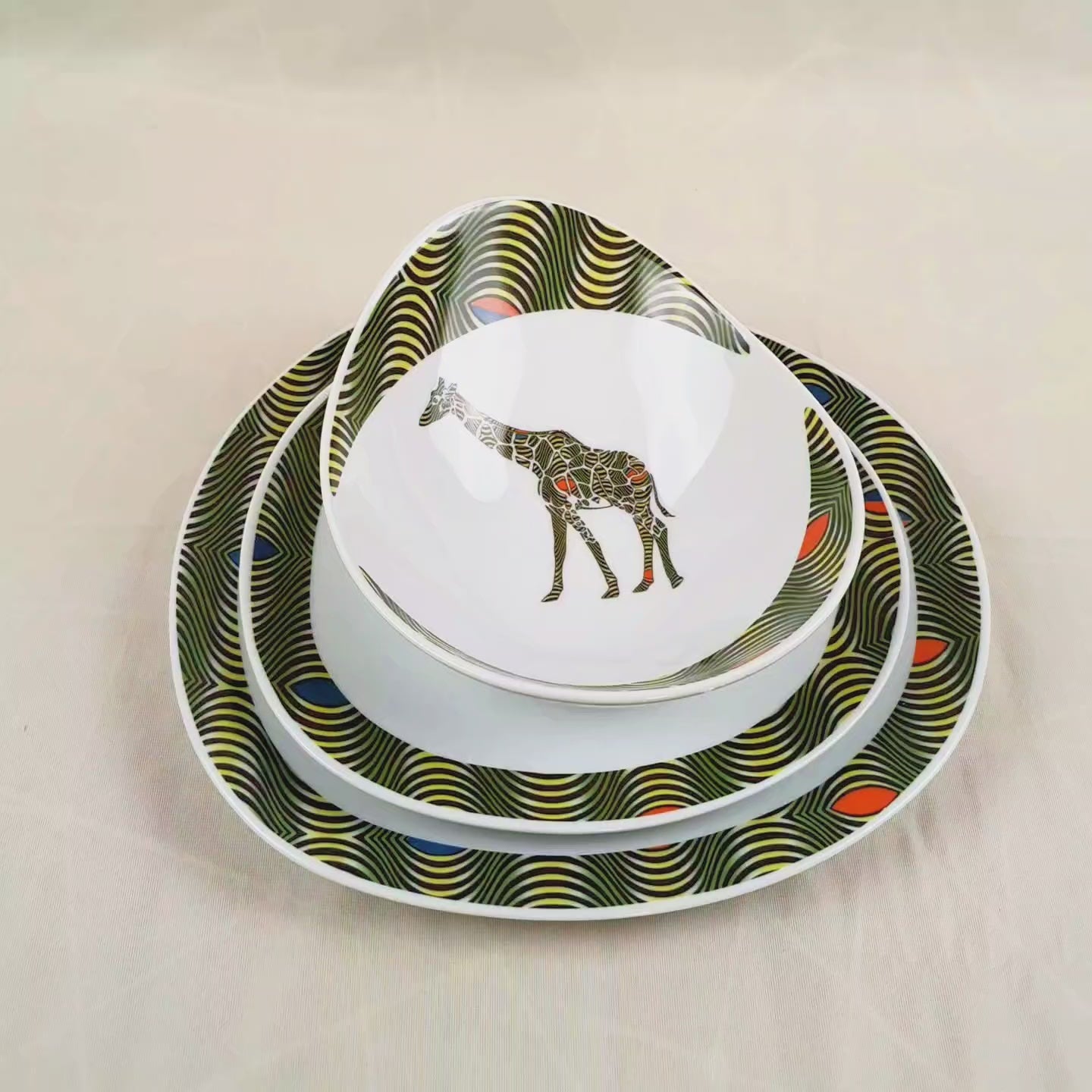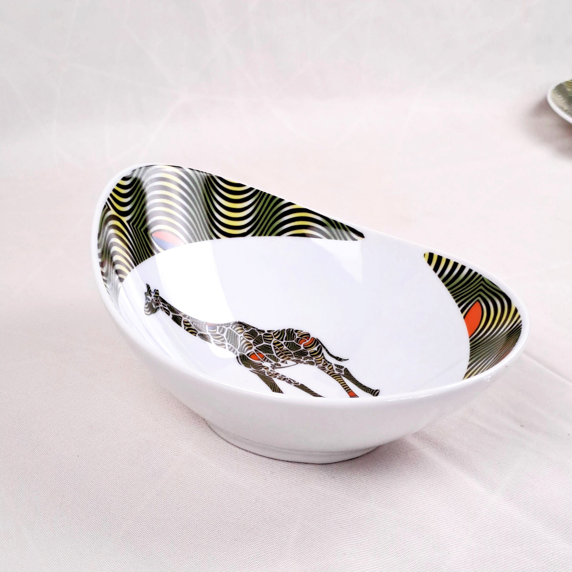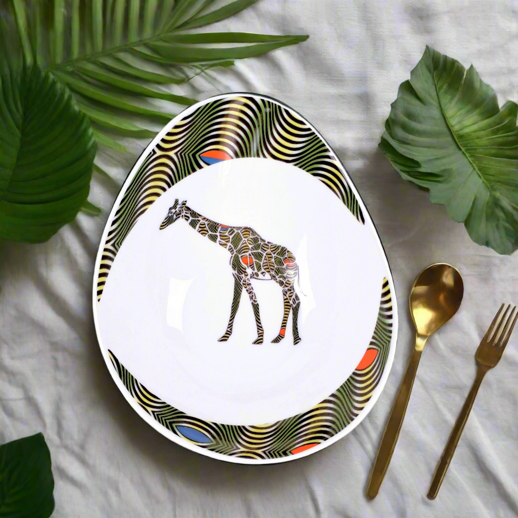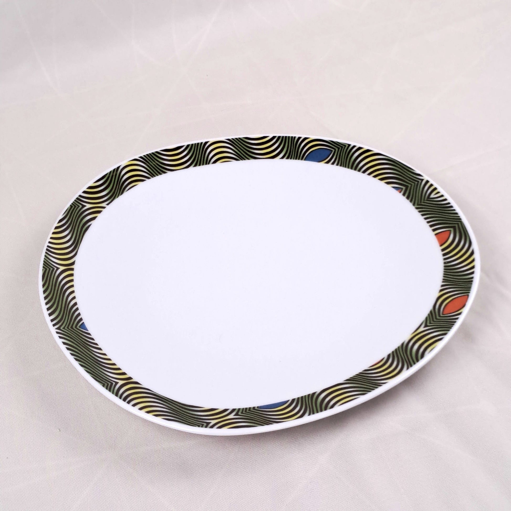 Coffret de 6 Assiettes Ovales en Porcelaine Fine – Motif Wax “Œil de ma Rivale”