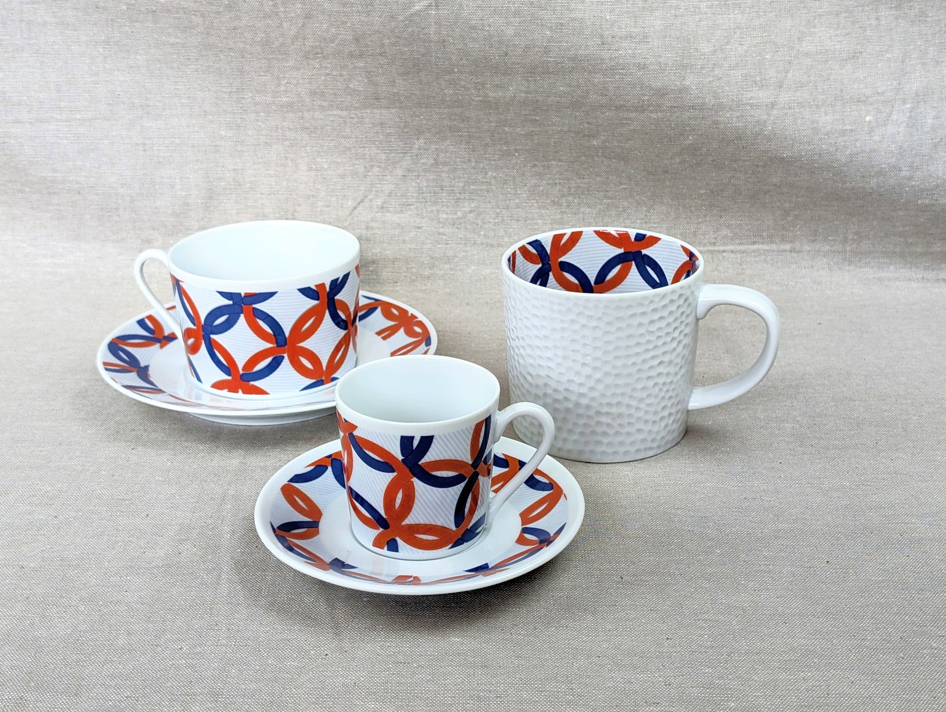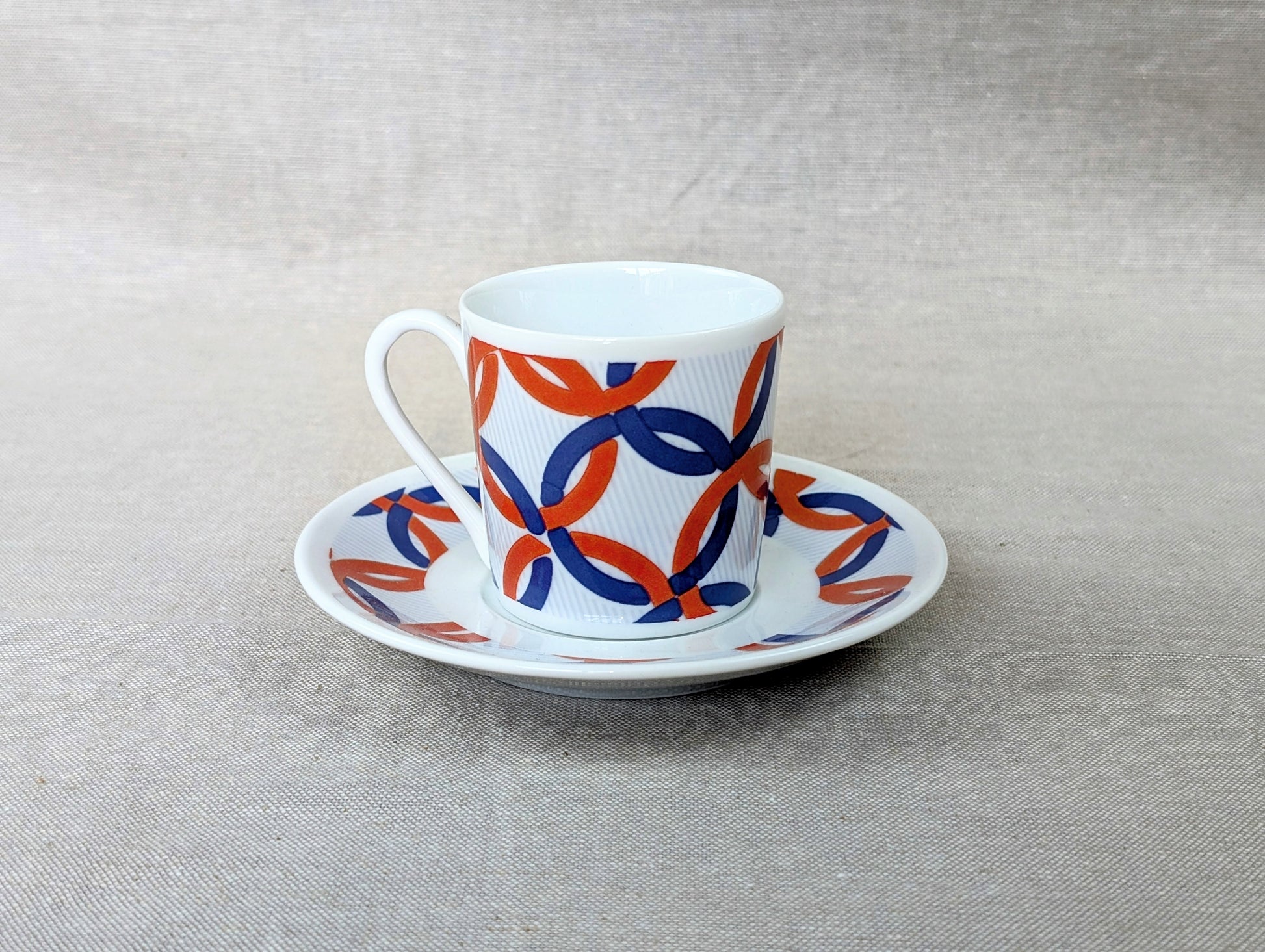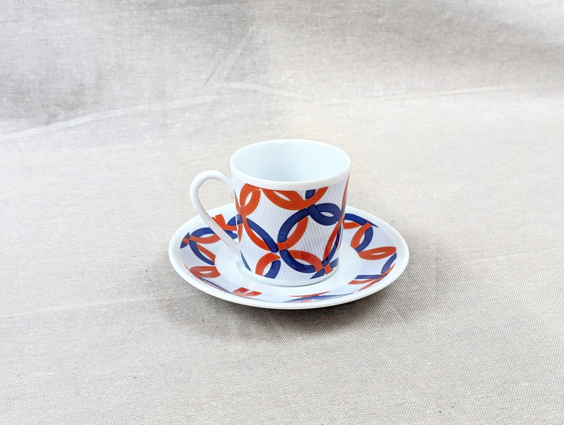Tasse à café en porcelaine fine de 5 cm de haut avec soucoupe de 11cm agrémentées de motifs africains wax "jeux Olympiques"