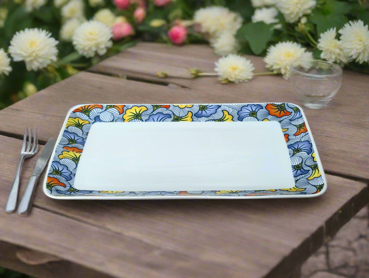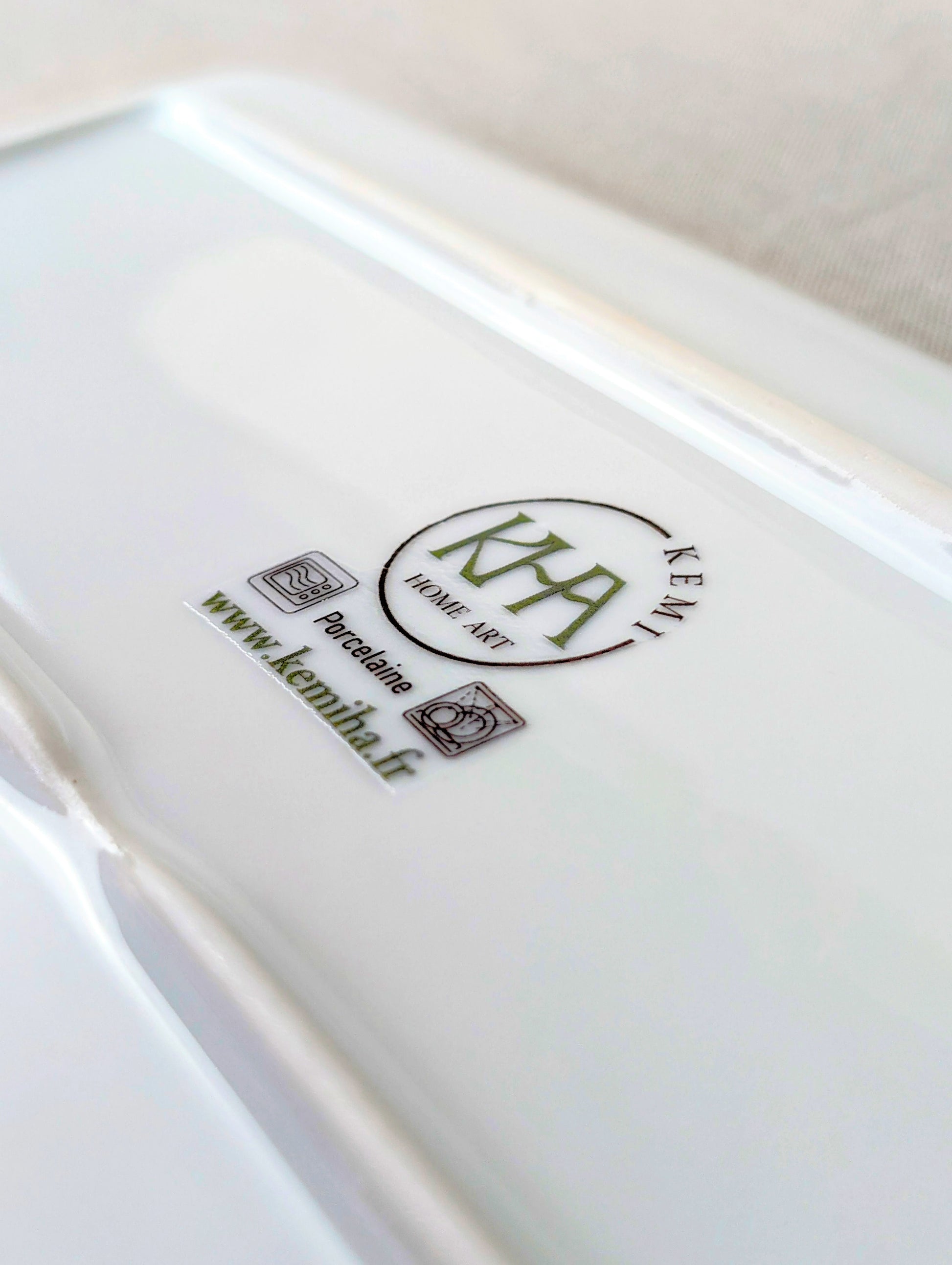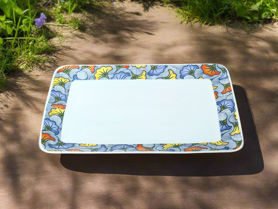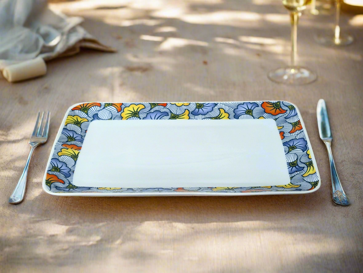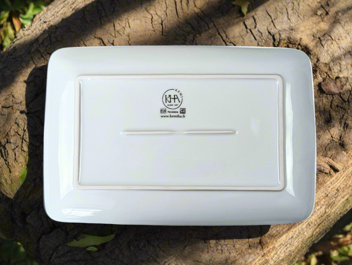 Grand Plat Rectangulaire en Porcelaine Fine – Motif "Fleurs de Mariage"