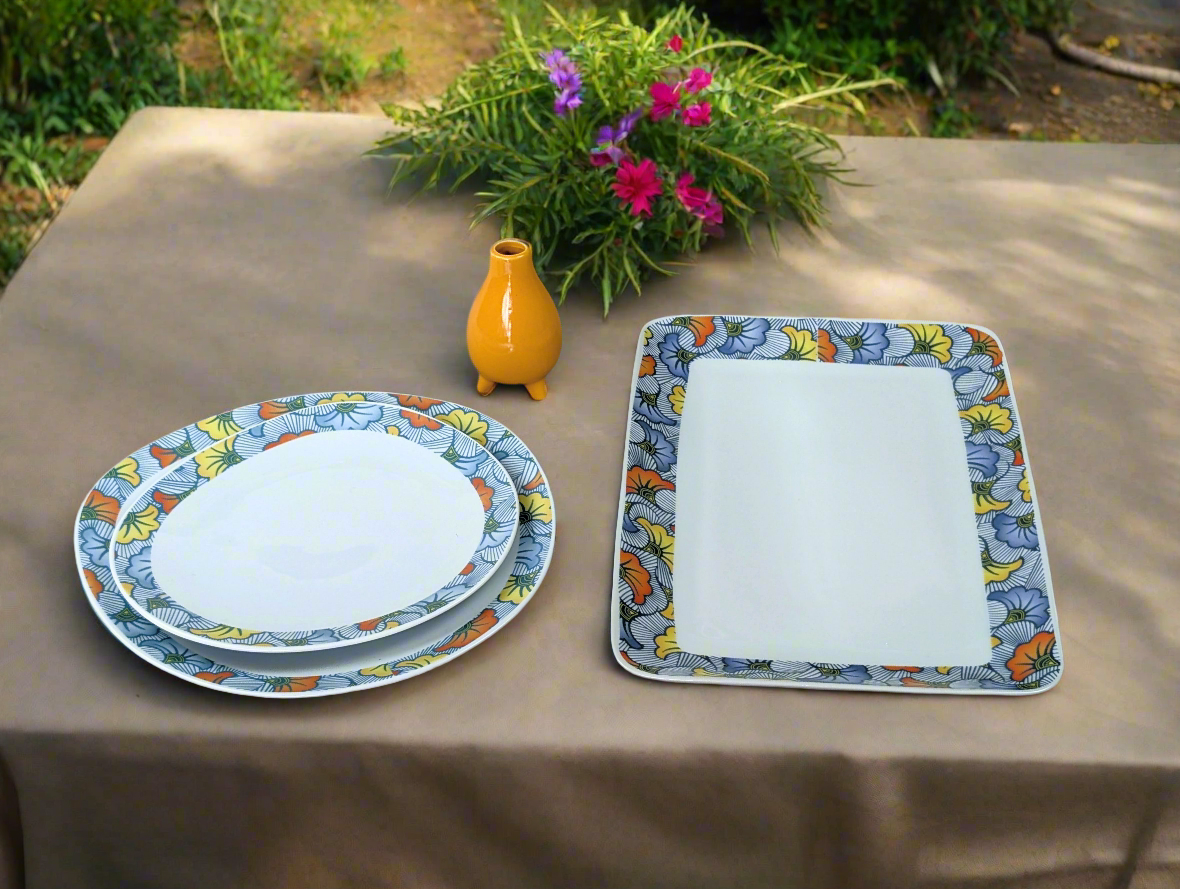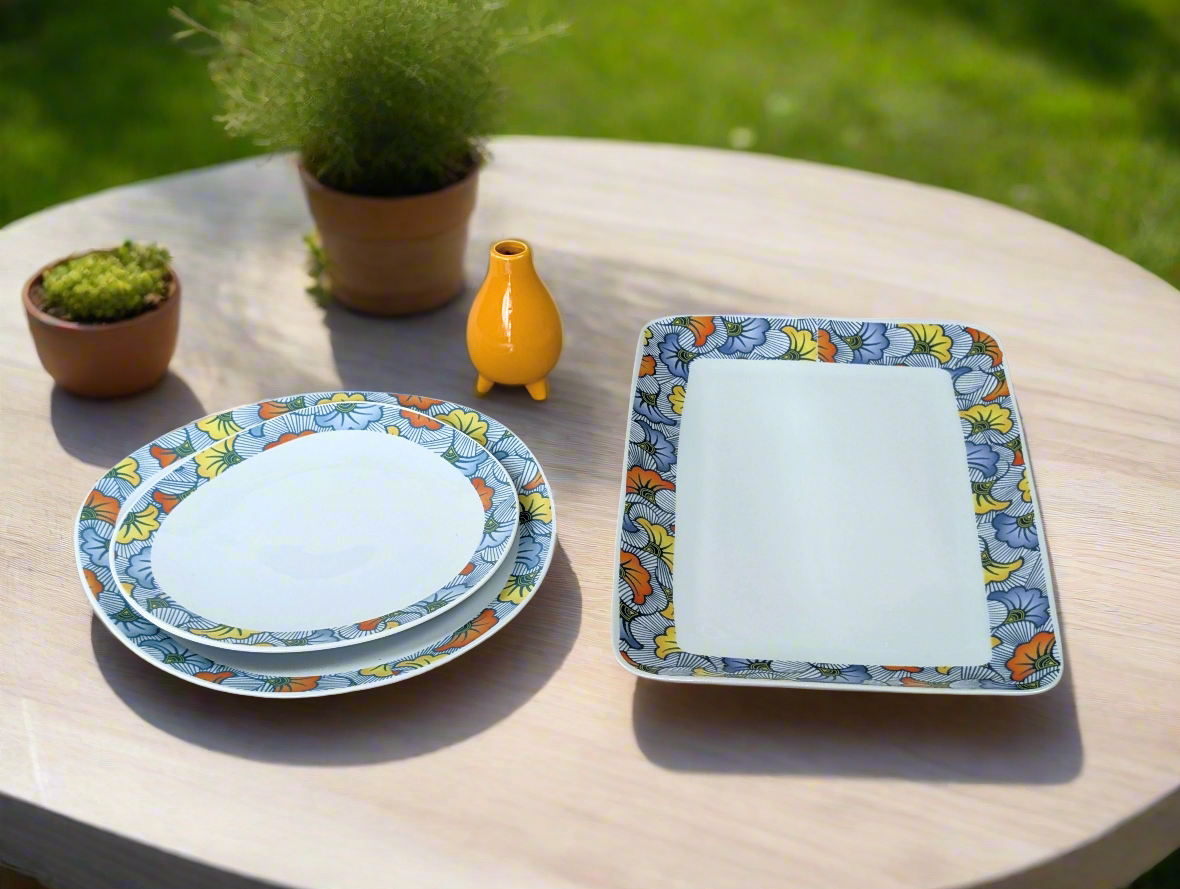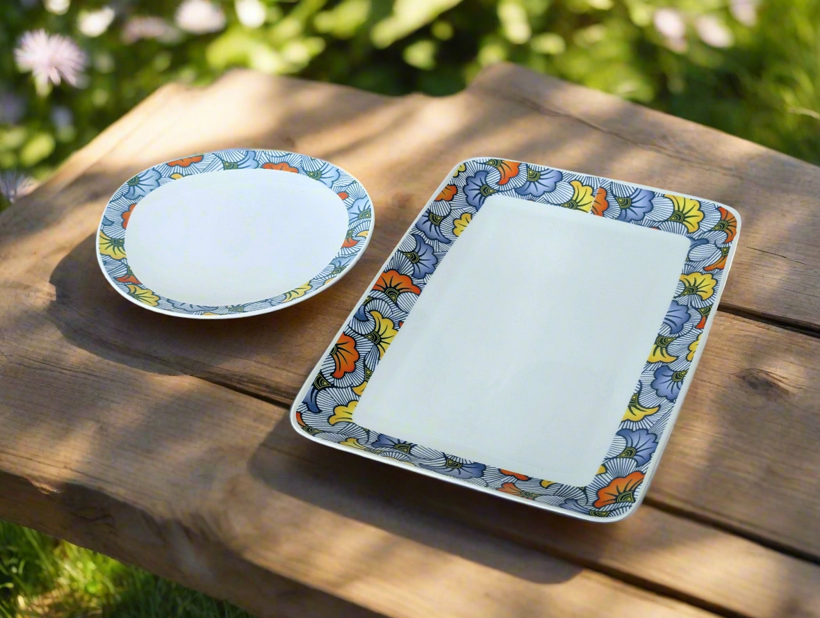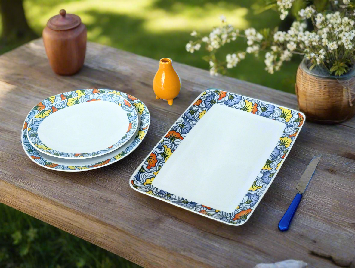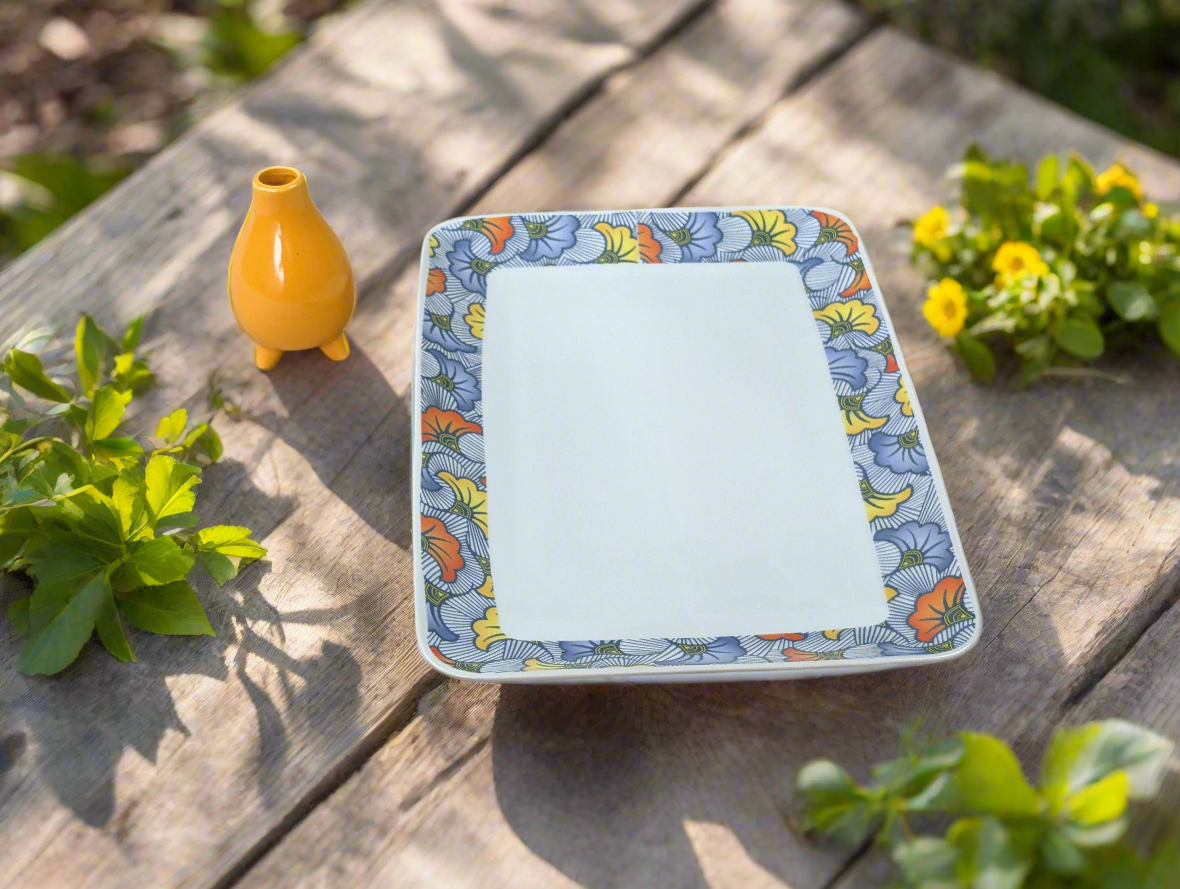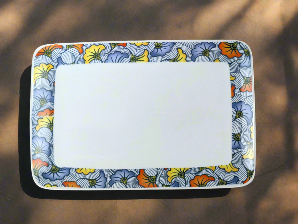 Grand Plat Rectangulaire en Porcelaine Fine – Motif "Fleurs de Mariage"