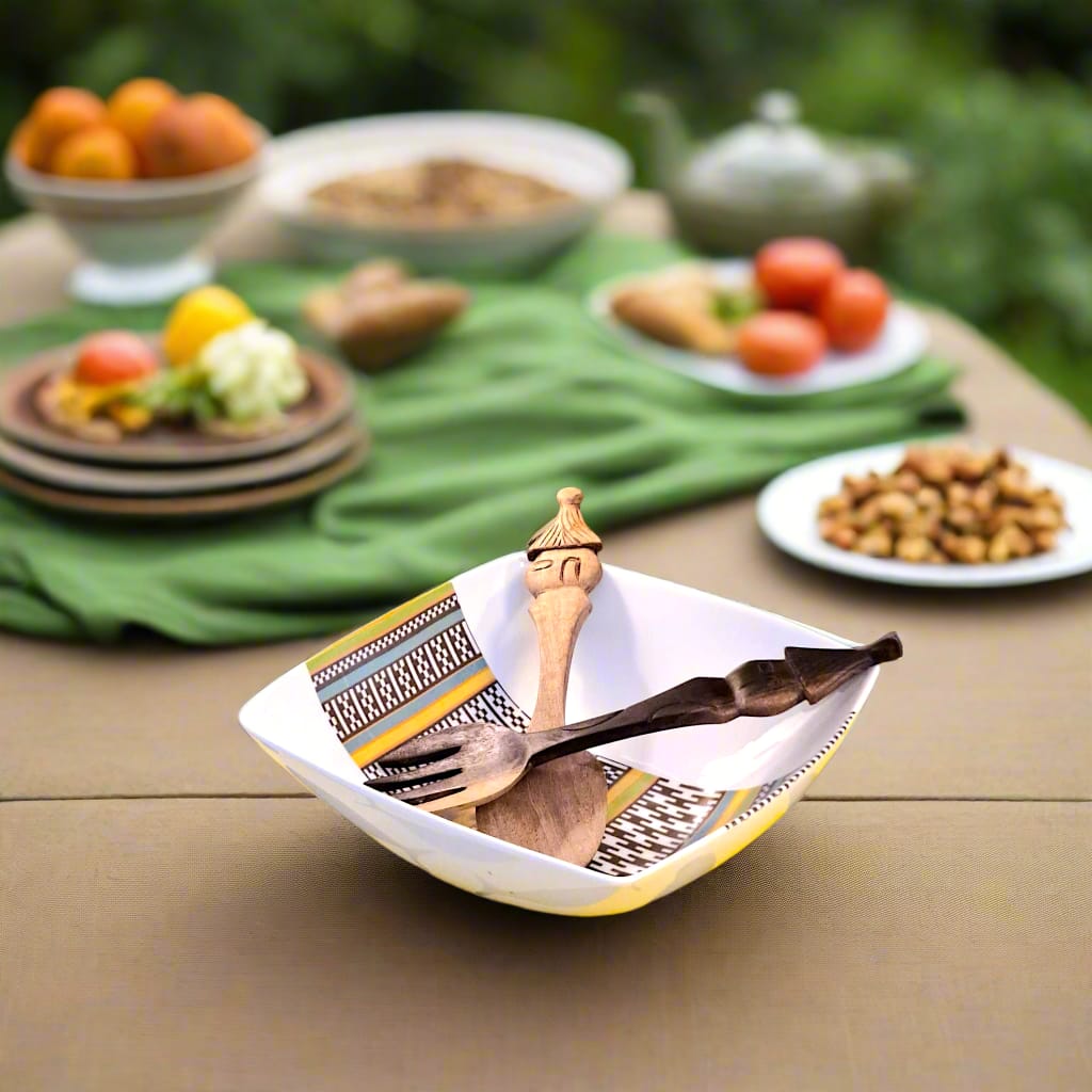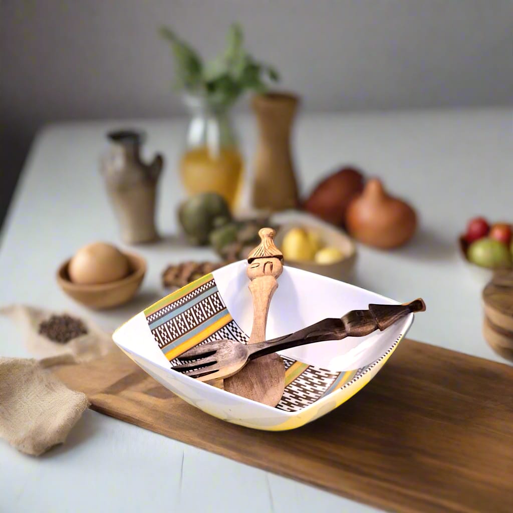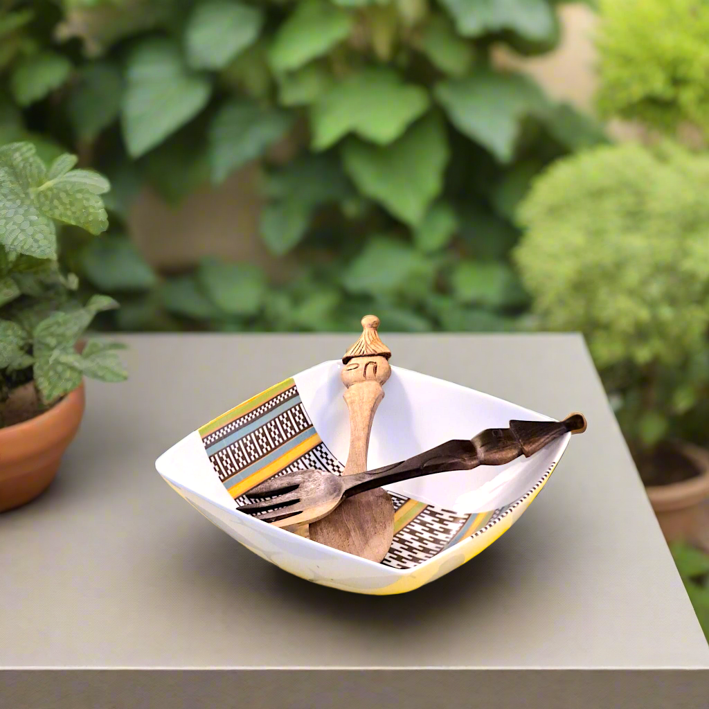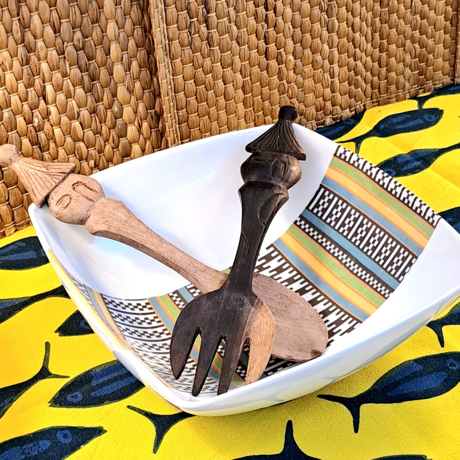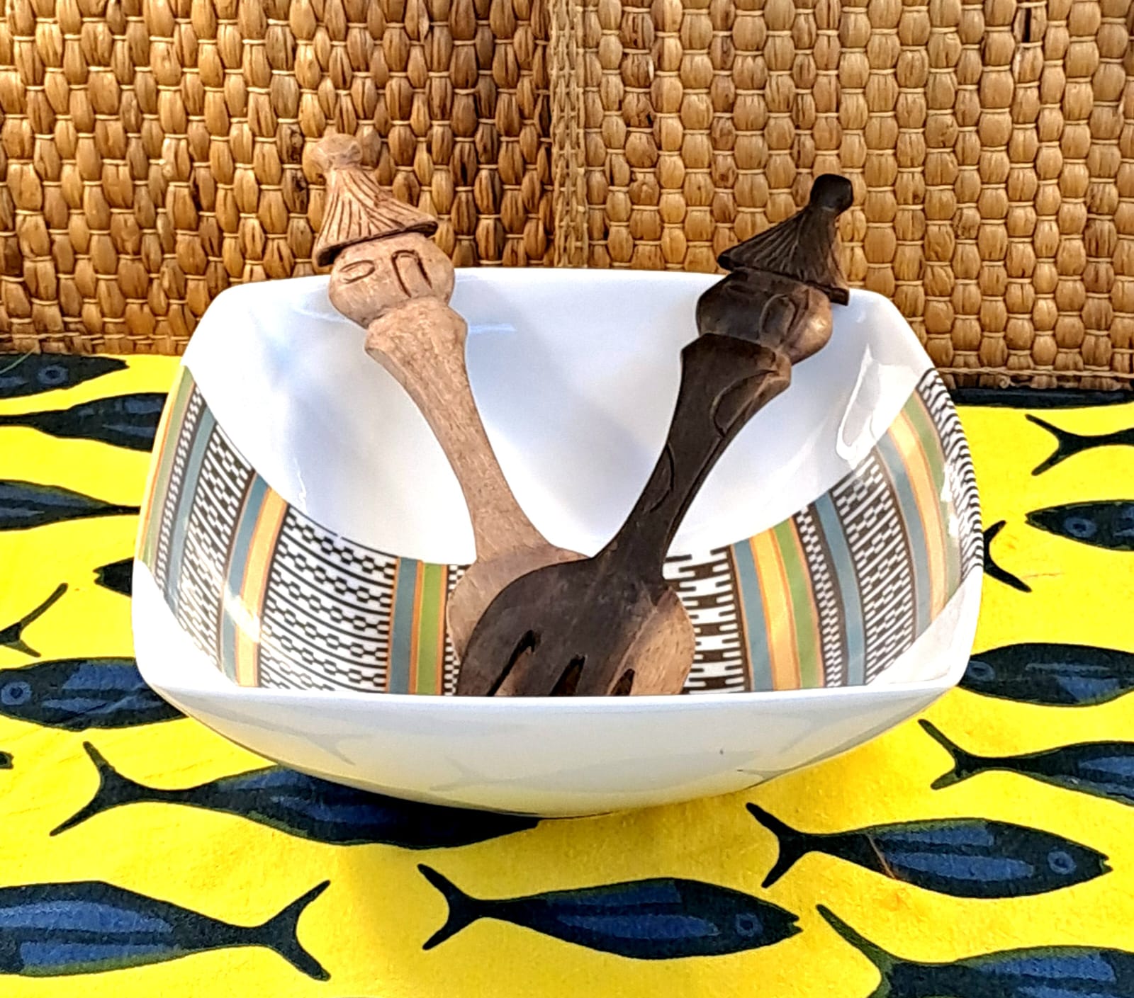 ### **Saladier en Porcelaine Fine – Motif "Kanta" du Niger**