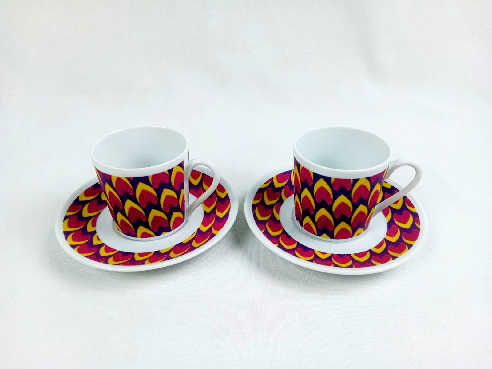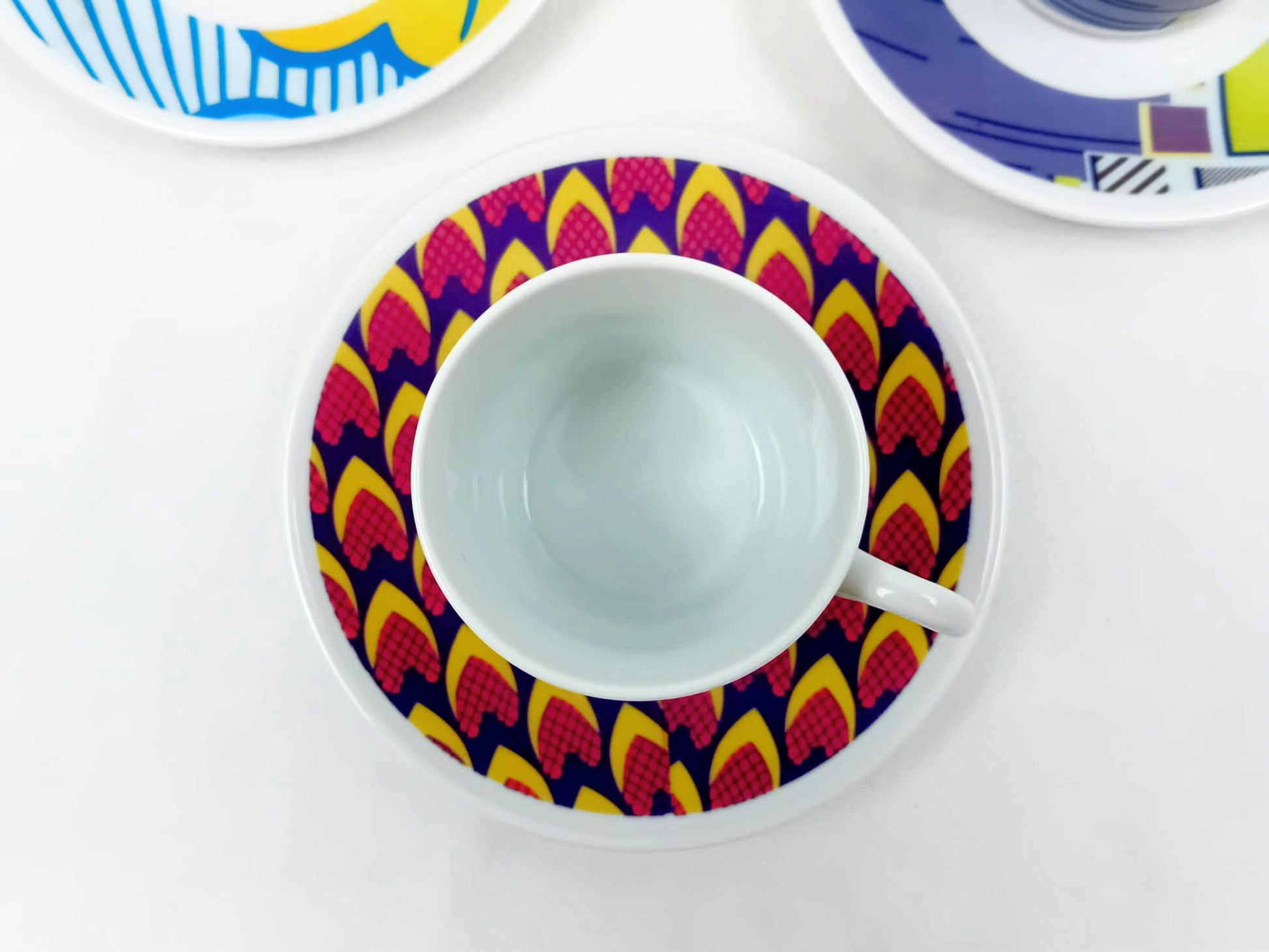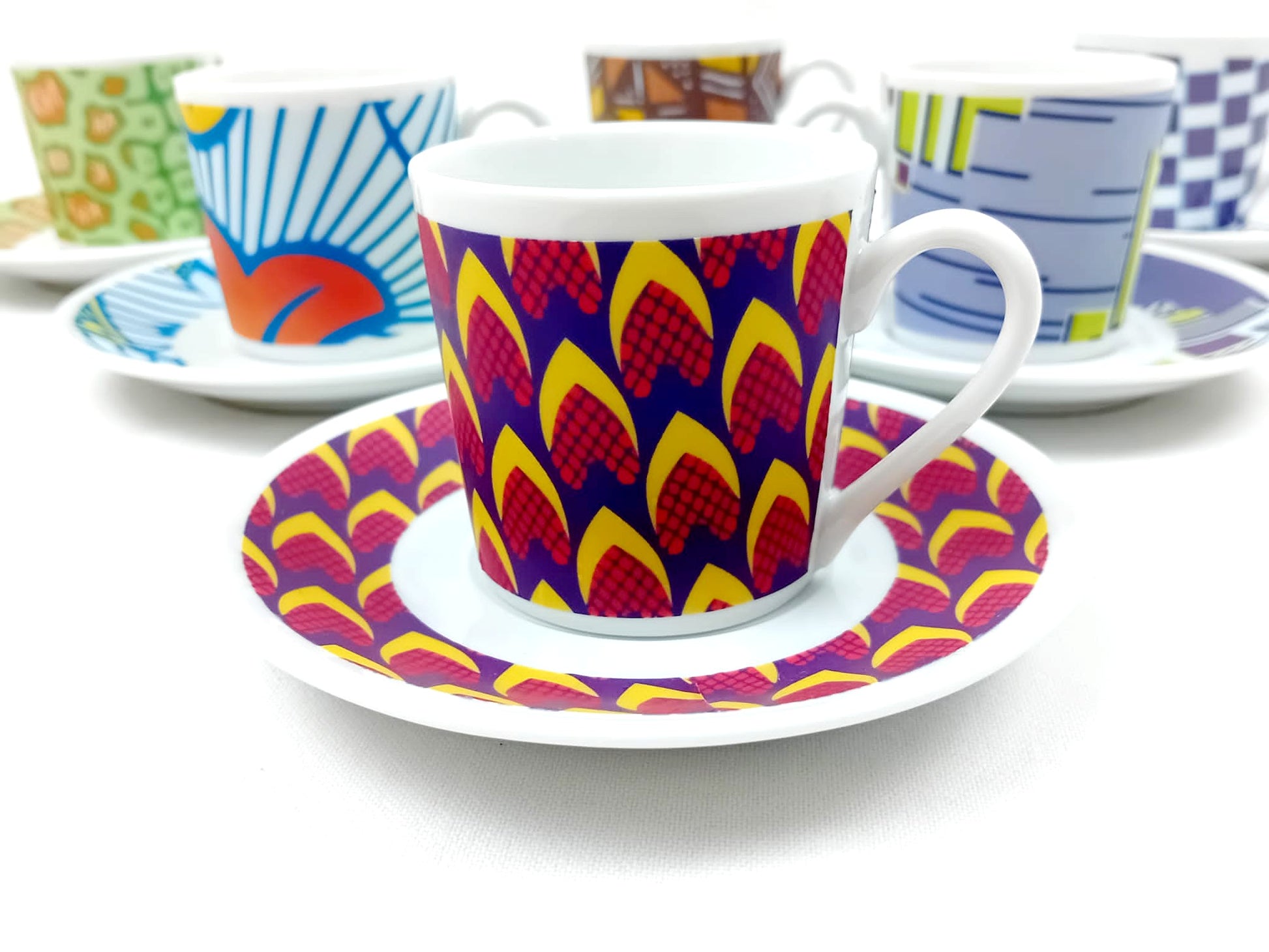 Tasse à Café avec soucoupe en porcelaine fine Française fabriquée à la demande motif plein WAX d'afrique "Ongles de Marie-Therese"
