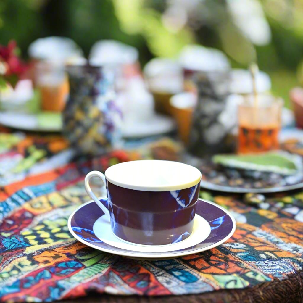 Un hommage à l’élégance intemporelle et aux traditions africaines. Cette tasse à thé en porcelaine fine française célèbre le **motif Indigo**, une teinture ancestrale qui incarne la profondeur et la richesse culturelle.