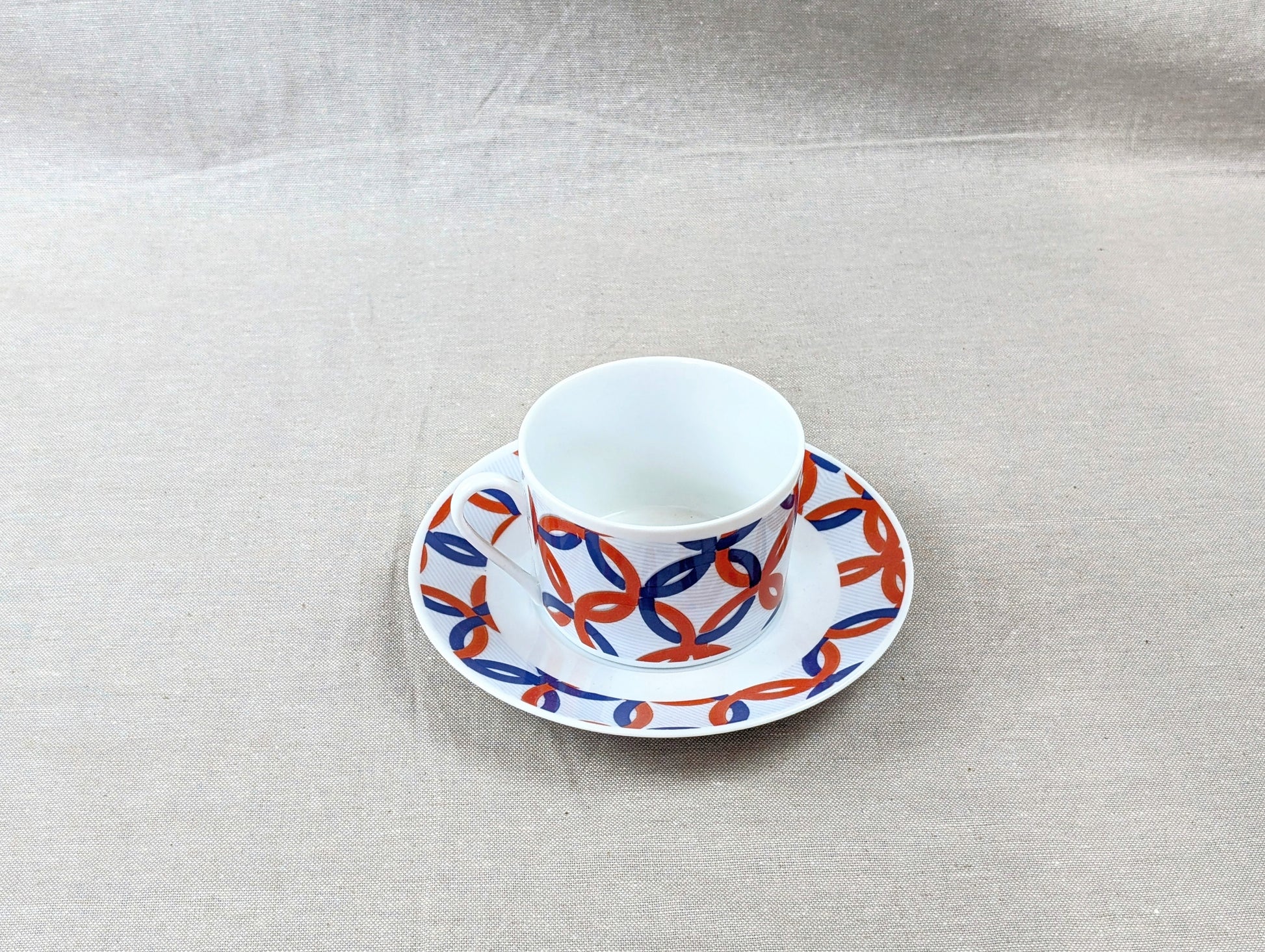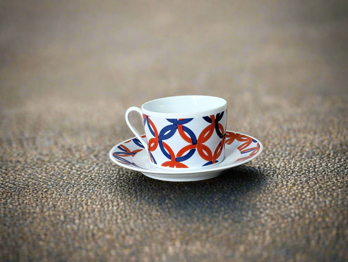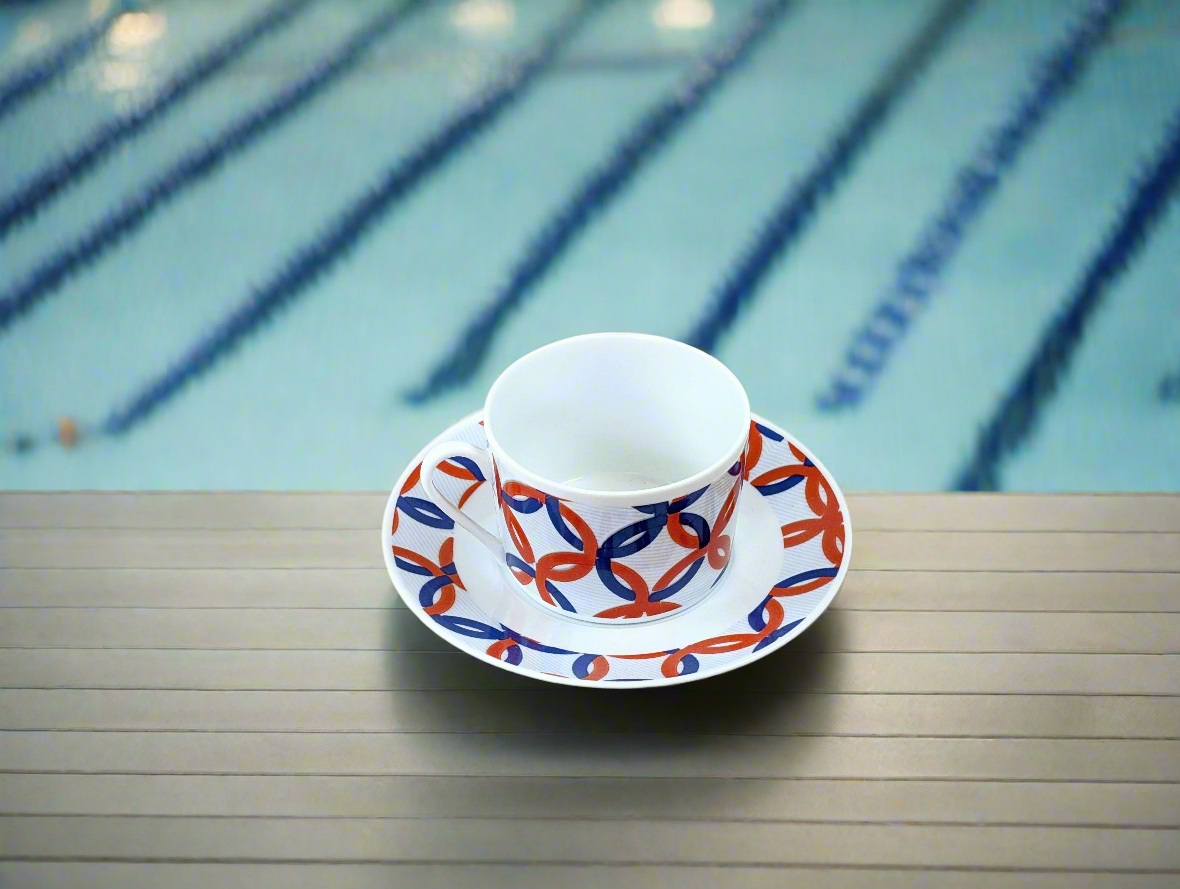 Tasse à thé en porcelaine fine Française fabriquée à la demande avec soucoupe motif africain WAX "jeux Olympiques"