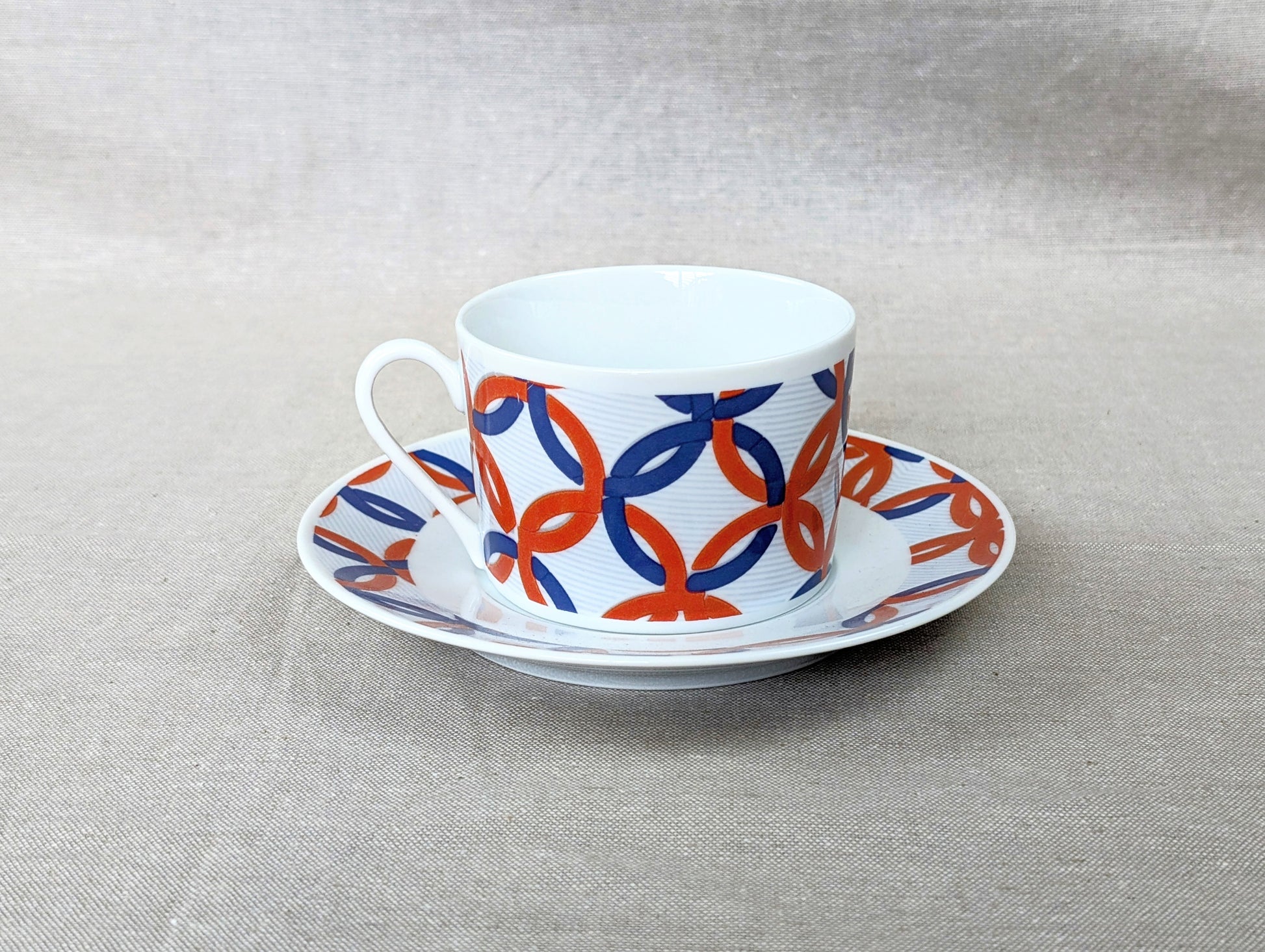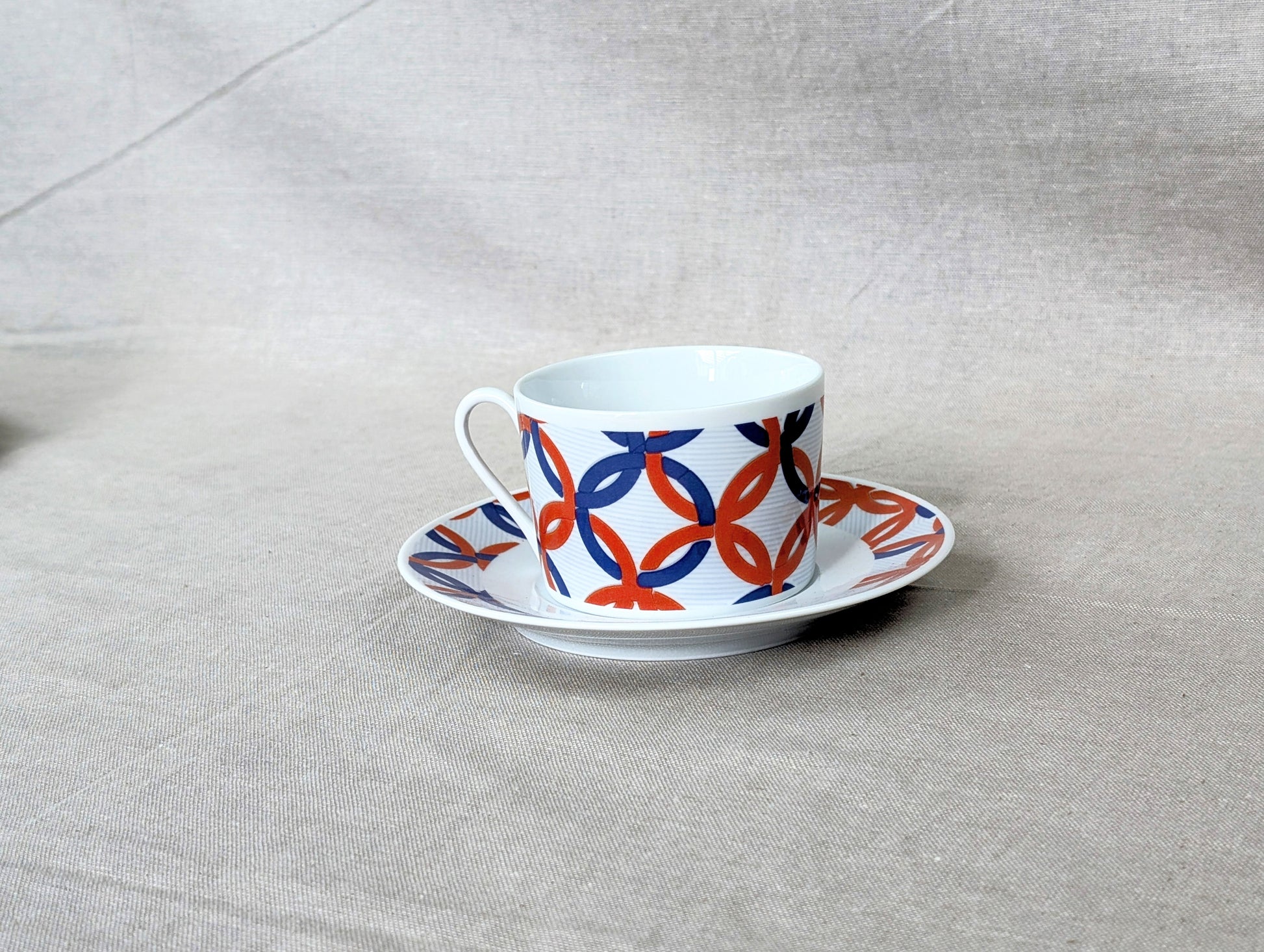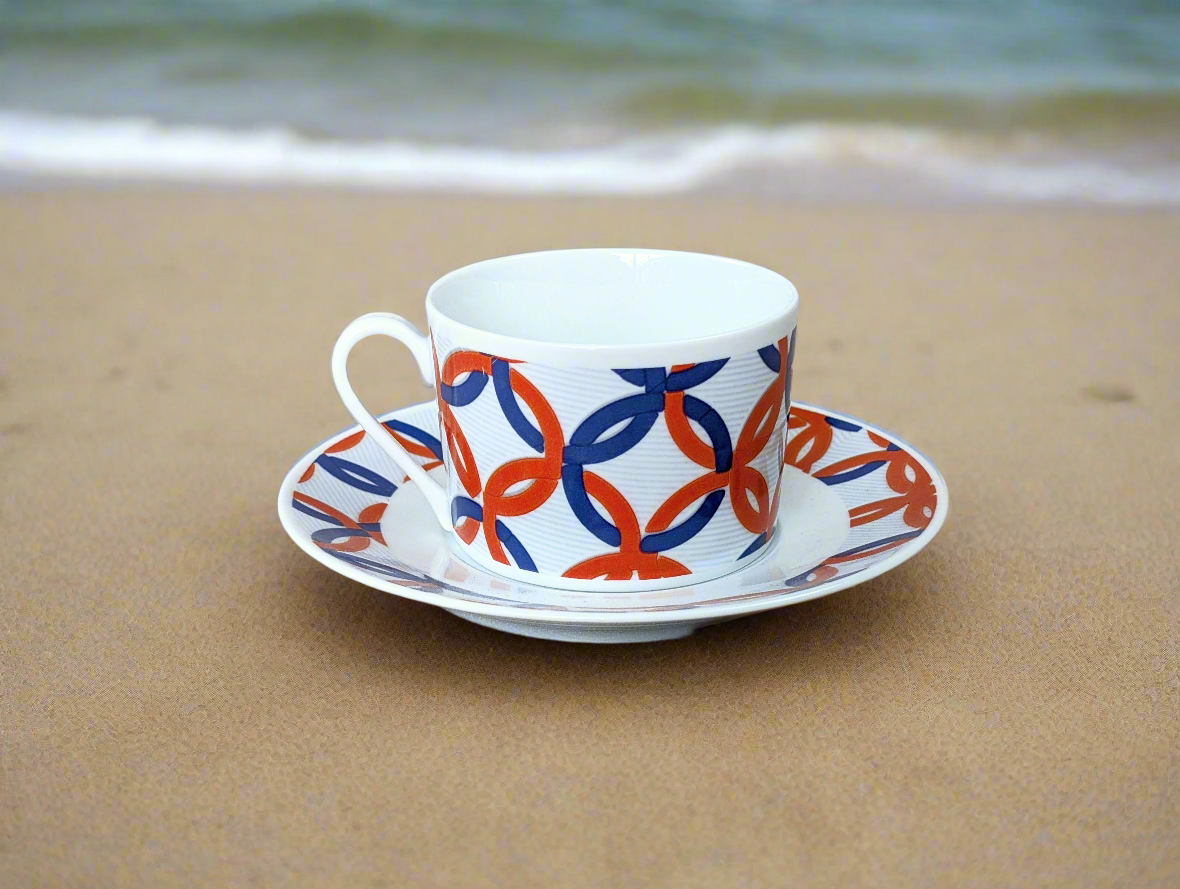 Tasse à thé en porcelaine fine Française fabriquée à la demande avec soucoupe motif africain WAX "jeux Olympiques"